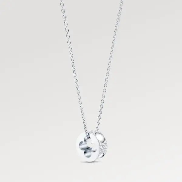 伝説のトランクの釘は、アンプラント コレクションのシグネチャーとなっています。ペンダントでは、中央にあしらわれた特徴的なモノグラム・フラワーのモチーフの周りに、釘が繊細な痕跡を残しています。
