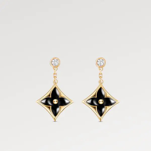 カラー ブロッサム BBは、1896年にジョルジュ・ヴィトンが生み出したモノグラム・フラワーを称える作品です。繊細な彫刻が施されたオニキスの花が咲き誇るフェミニンなドロップイヤリングは、18Kイエローゴールドにセットされ、ダイヤモンドがアクセントを添えています。エレガントなデザインは、昼夜を問わず、どんなシルエットにもマッチします。