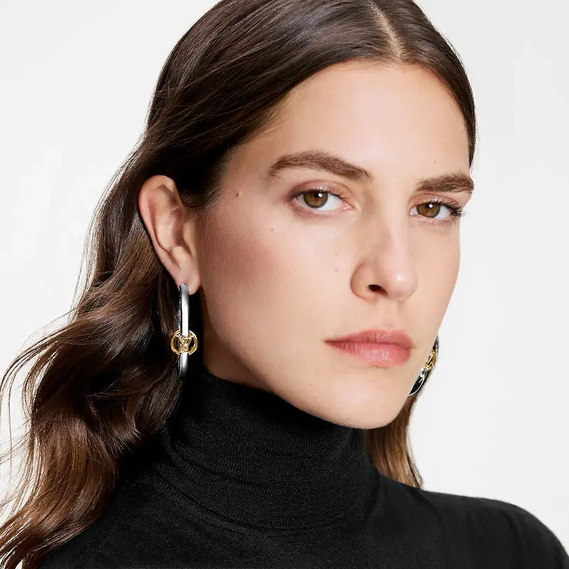 My LVイヤリングは、リボンを思わせるフープがあしらわれた大きなLVサークルが特徴です。モダンなオーバーサイズのシルエットと様々な仕上げが特徴で、幅広いシーンで活躍します。ブレスレットやリングなど、カプセルコレクションの他のアイテムと完璧にマッチします。