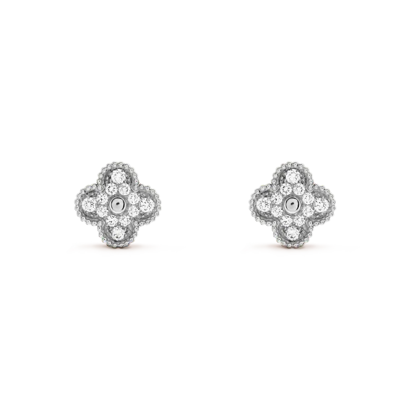クリップバックと取り外し可能なイヤリング、18Kプラチナ、ブティックで取り外しまたは調整できます