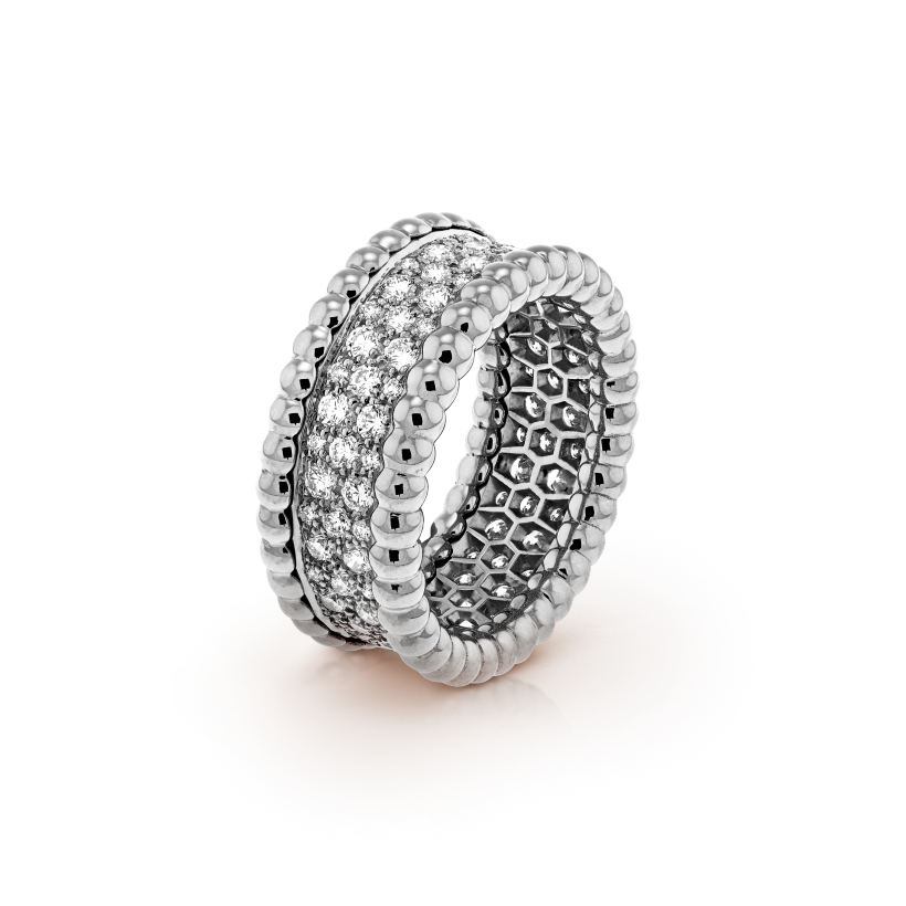 ヴァン クリーフ&アーペルの新作、3列のダイヤモンドインレイデザインが特徴のペルレ ダイヤモンド リング