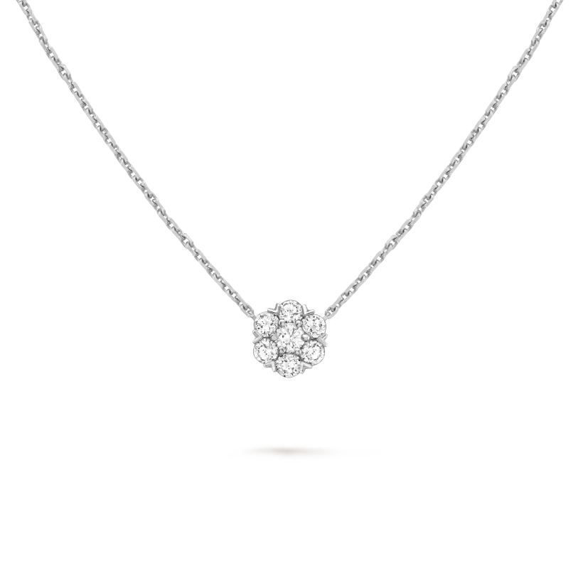 フルーレット ペンダント、18K ローズ ゴールド、ラウンド ダイヤモンド、DEF、IF から VVS グレードのダイヤモンド。