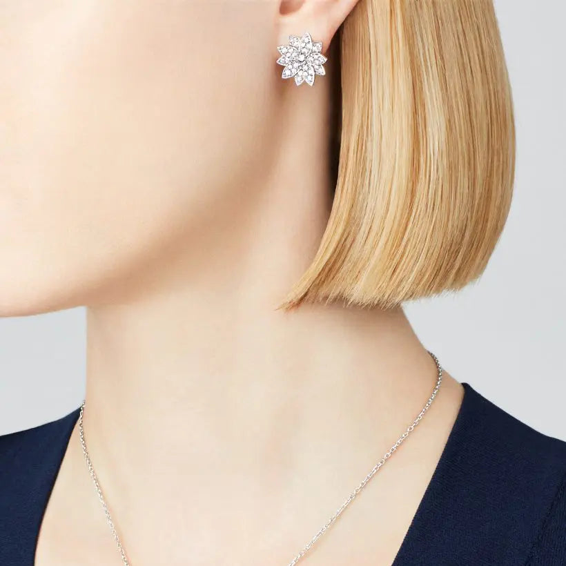 クリップバックと取り外し可能なイヤリング、18Kプラチナ、ブティックで取り外しまたは調整できます