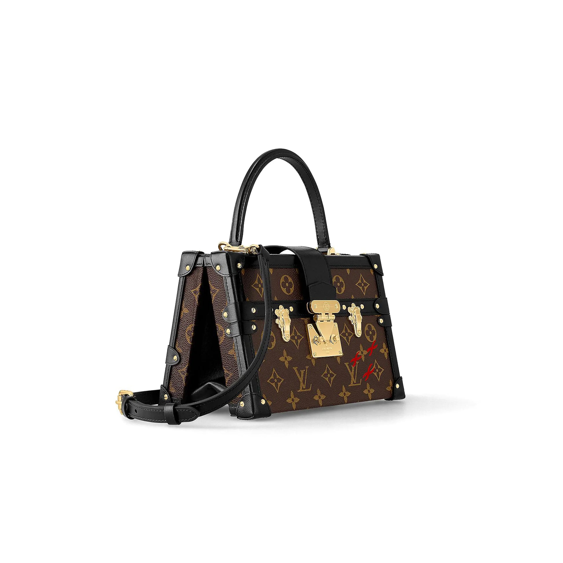 ニコラ・ジェスキカトレは、メゾンのトランク製造のルーツを再び探求し、非常にモダンなハンドバッグ「プティ・マル V」を創り上げました。モノグラム・キャンバスにブラックのレザートリムを施したこのバッグは、横から見るとV字型のマチが柔らかさを演出し、収納力も向上しています。内側には、ゴールドカラーのチェーンで留められたモノグラムのジップ付きポーチが付いています。