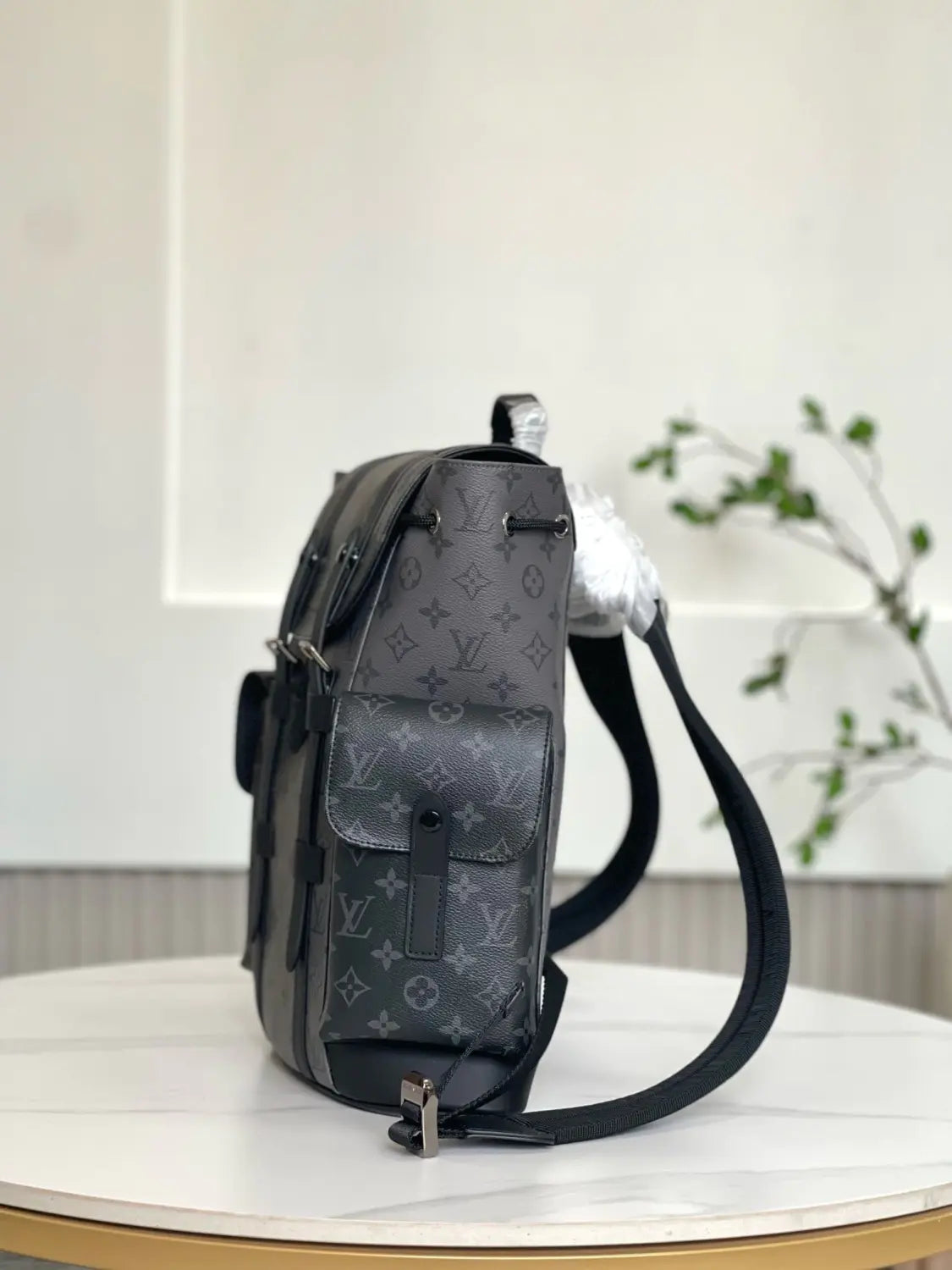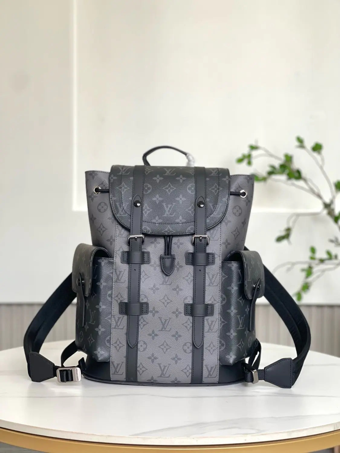 クリストファー PM バックパックは、モノグラム・エクリプス リバース キャンバスにブラックのレザートリムを施した、印象的なデザインです。2つのサイドポケットは必需品を素早く取り出しやすく、スナップボタン留めのレザーフラップが持ち物を安全に守ります。クリストファー PM は、頑丈なハイキング用リュックサックのデザインからインスピレーションを受け、コンパクトサイズに仕上げました。