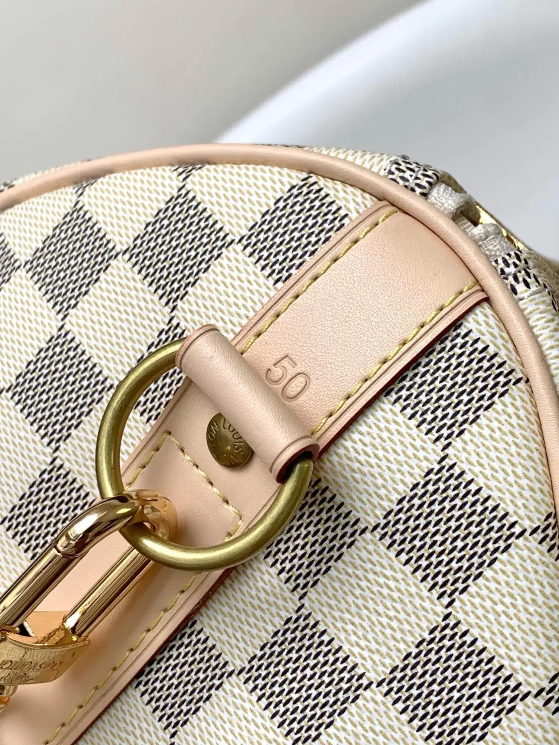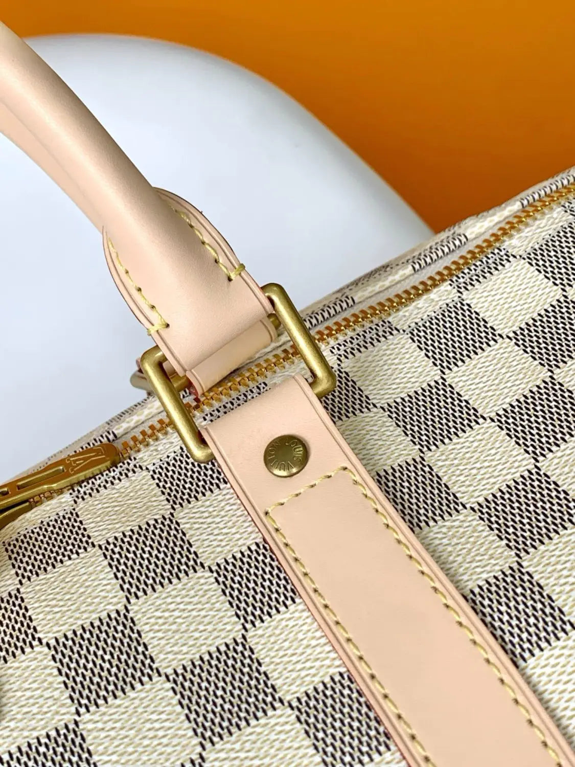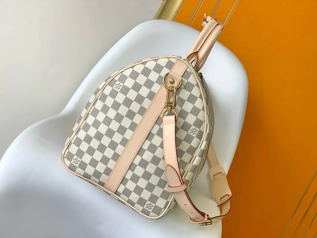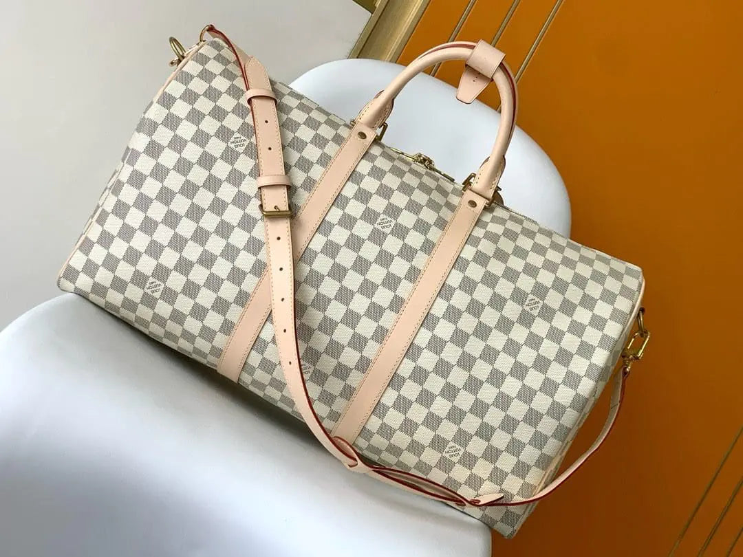 このキーポル・バンドリエール55は、シックなダミエ・キャンバスを使用しています。時代を超越しながらも新鮮な感覚で、旅のスピリットを自然に表現しています。内部には十分な収納力があり、実用性も抜群です。