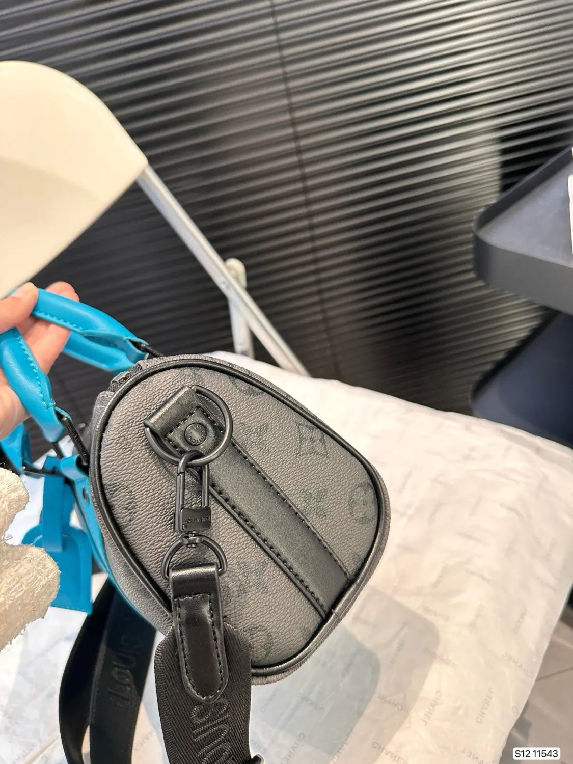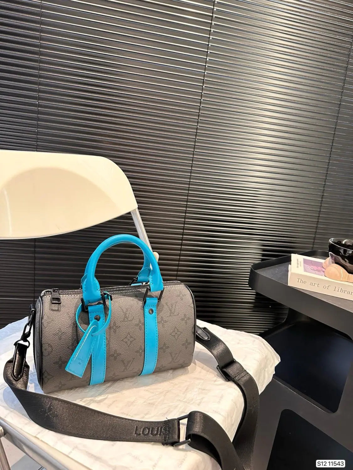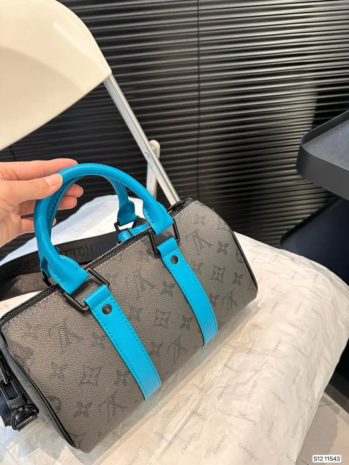 モノグラム・エクリプス・リバース キャンバスにターコイズカラーのレザートリムを合わせた、キーポル・バンドリエール 25 シティバッグ。サイドの補強バンド、トップハンドル、ネームタグは鮮やかなカラーでアクセントを添え、コンパクトなバッグに躍動感を添えています。マットブラックの金具と、取り外し・調節可能なブラックカラーのテキスタイルストラップが、デザインを引き立てます。