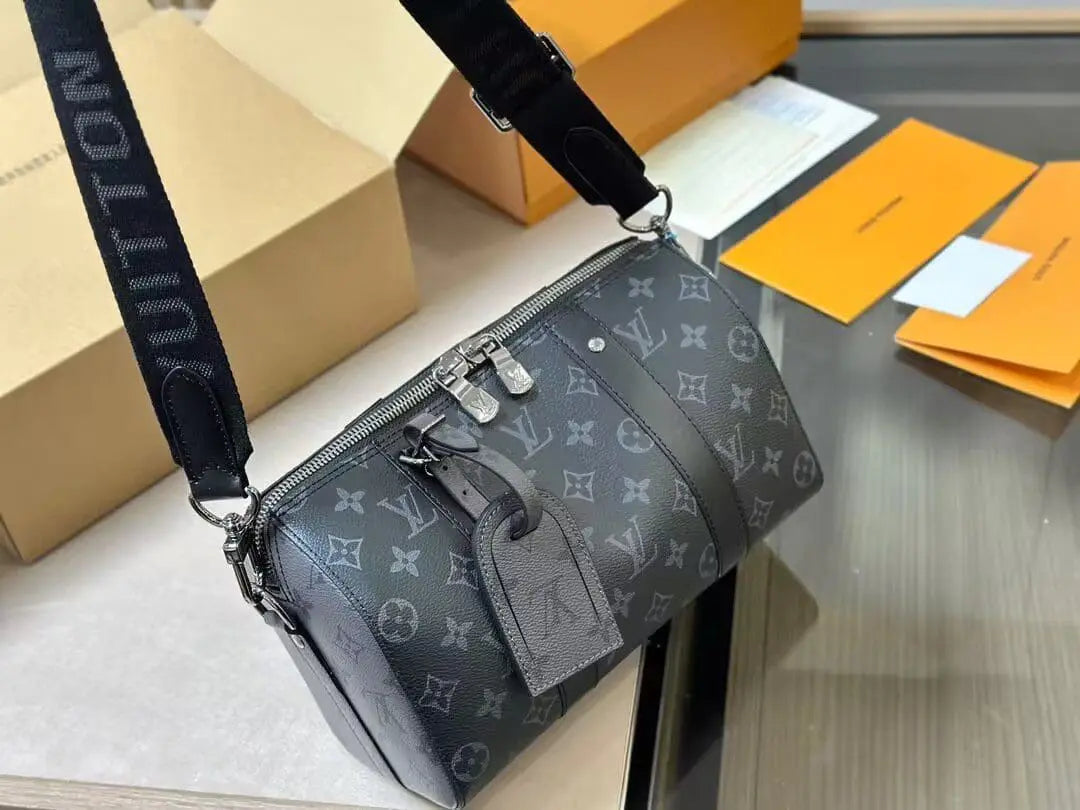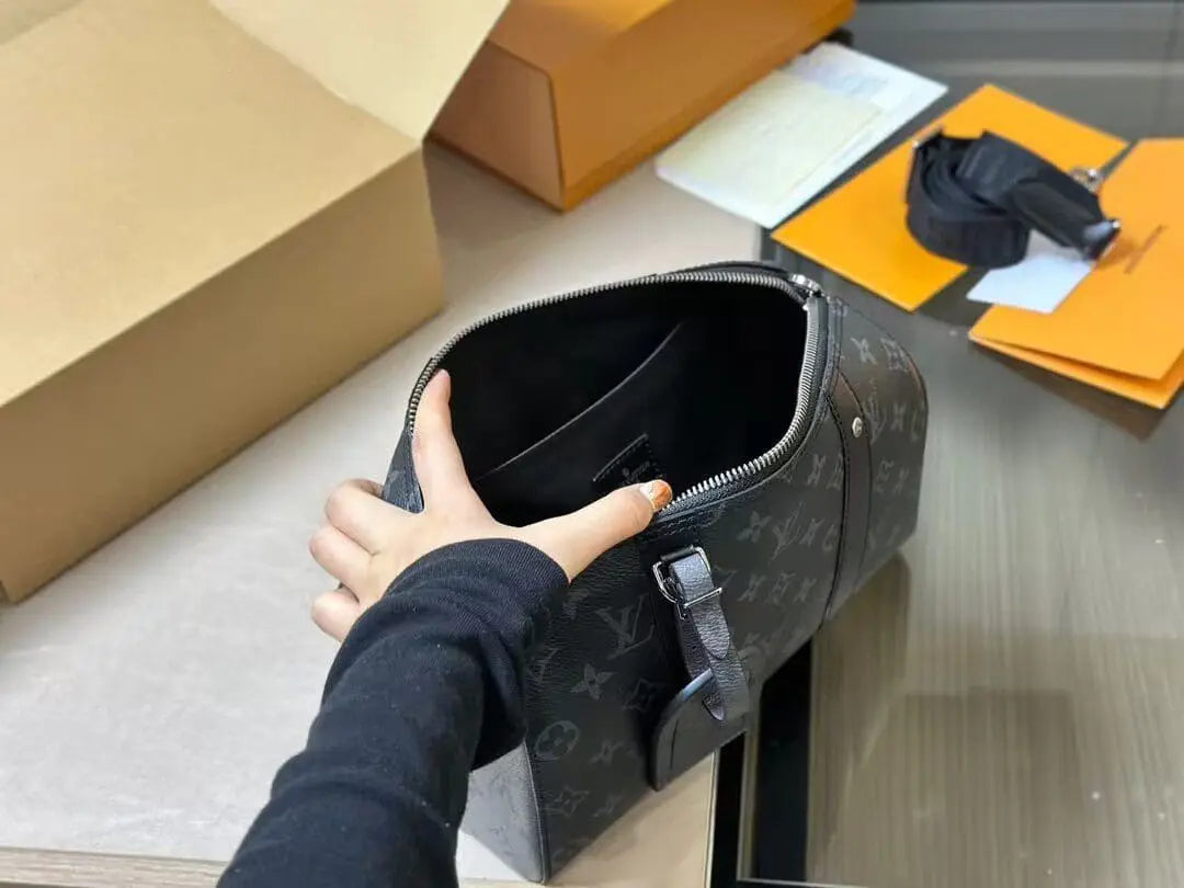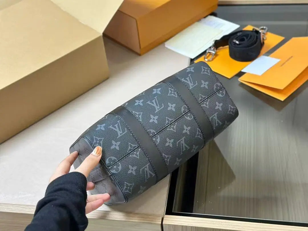 キーポル・トラベルバッグは、クラシックな構造をトレンド感あふれる都会的なハンドバッグに凝縮しています。サイドには遊び心のあるフリップエフェクトのモノグラム柄が施され、2018年のキム・ジョーンズ・アップサイドダウン・コレクションを彷彿とさせます。モノグラム・エクリプス キャンバスバッグは取り外し可能なショルダーストラップ付きで、毎日の必需品を楽に持ち運べます。サイズ: