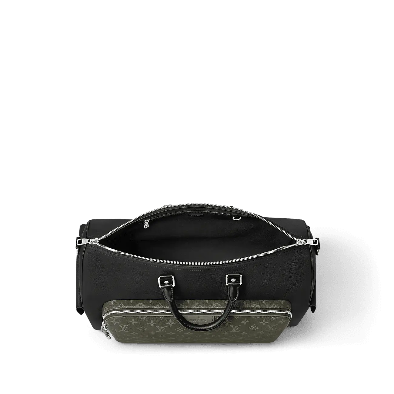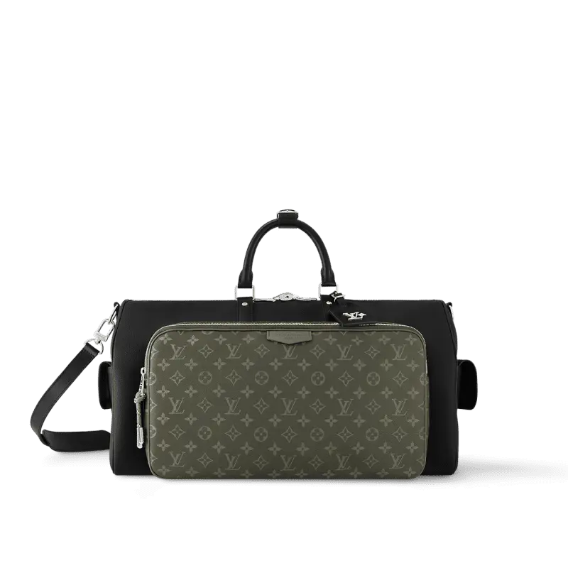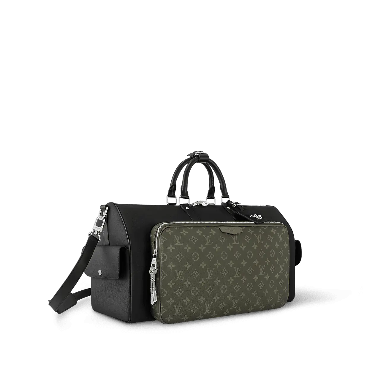 LVパークコレクションの一つ、キーポル・バンドリエール50のアイコニックなシルエットが、多用途性をもたらす外側のポケットで生まれ変わりました。モノグラム・コーテッドキャンバスを使用し、ジップ付きサイドポケットはバッグ本体のブラックのグレインレザーと完璧に調和し、パッチワークのような風合いを醸し出しています。取り外し可能なスエード製のLV Loversネームタグが付いています。