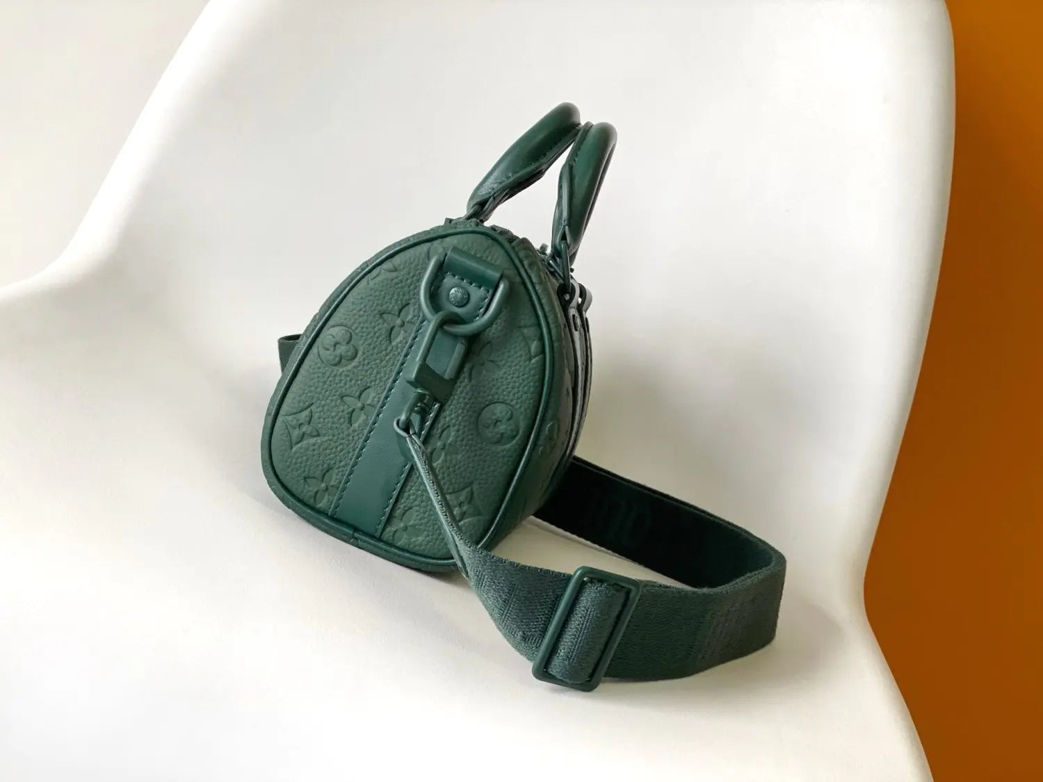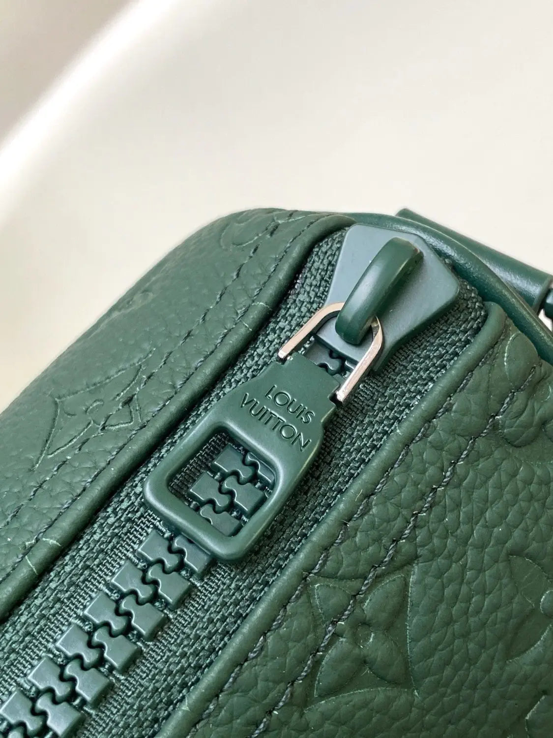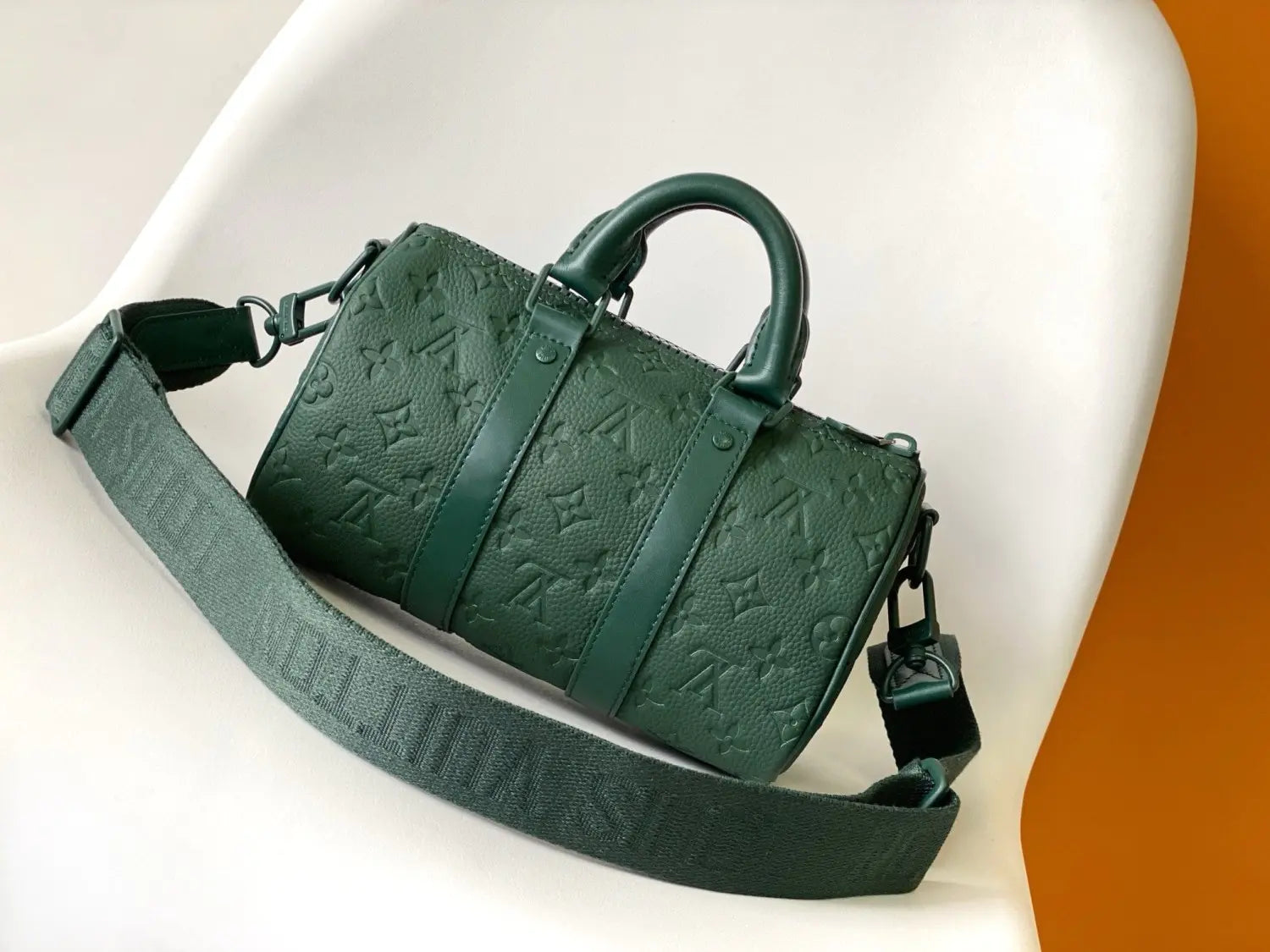 2024年、クラシックなキーポルのコンパクトバージョンが、アウトドアの美しさにインスパイアされたフレッシュな装いで登場。柔らかくも耐久性に優れたトリヨン牛革は、深みのある美しいフォレストグリーンに染め上げられ、アイコニックなモノグラム・パターンがエンボス加工されています。ストラップにあしらわれたLouis Vuittonのシグネチャーが、メゾンのこだわりを一層引き立てます。