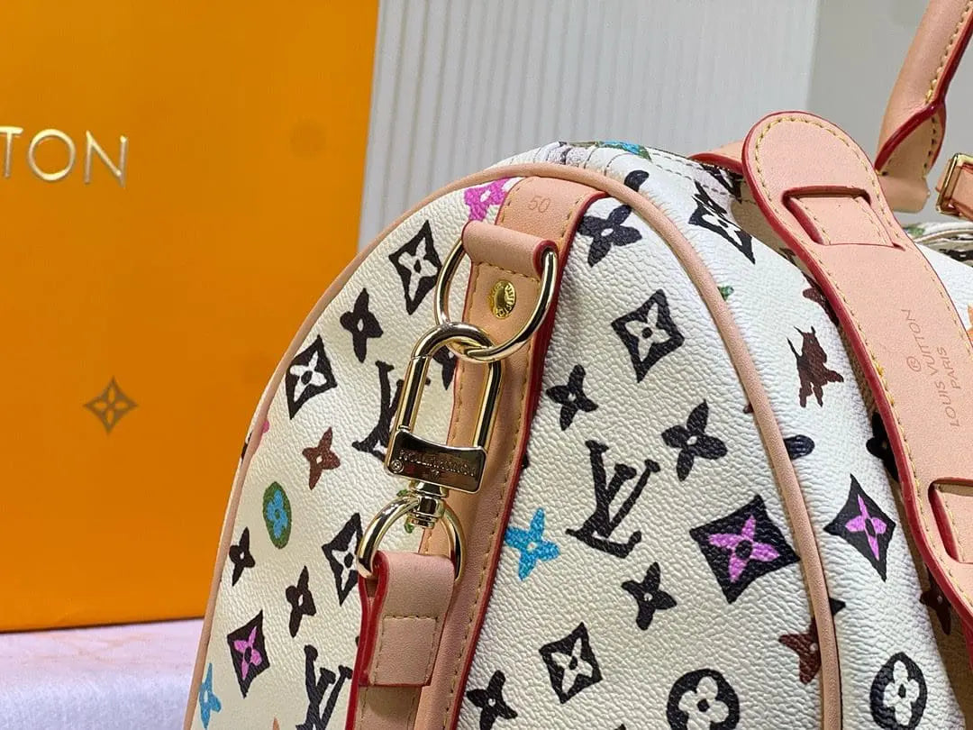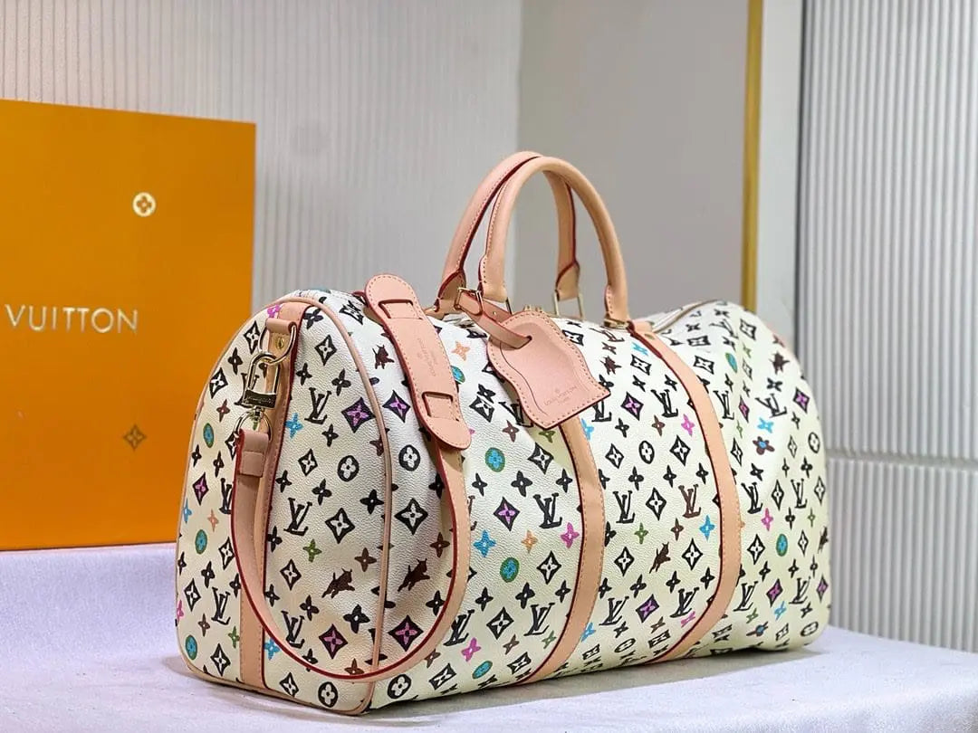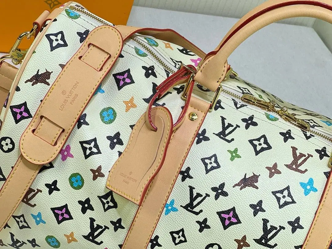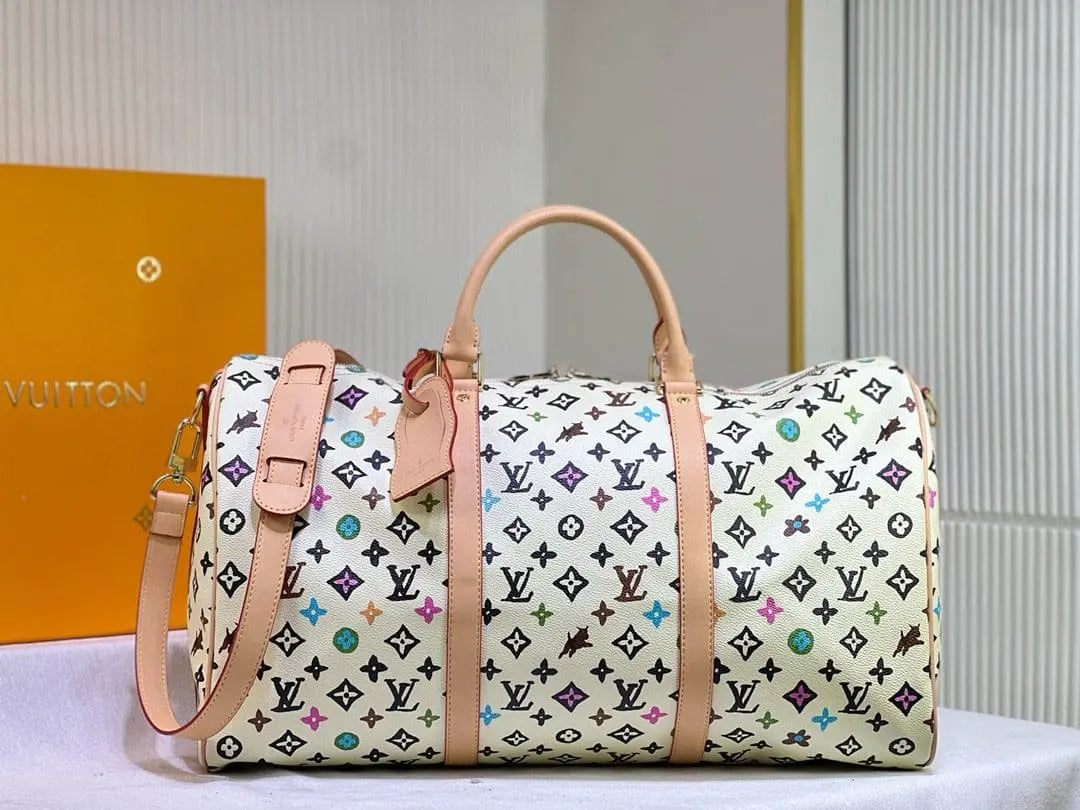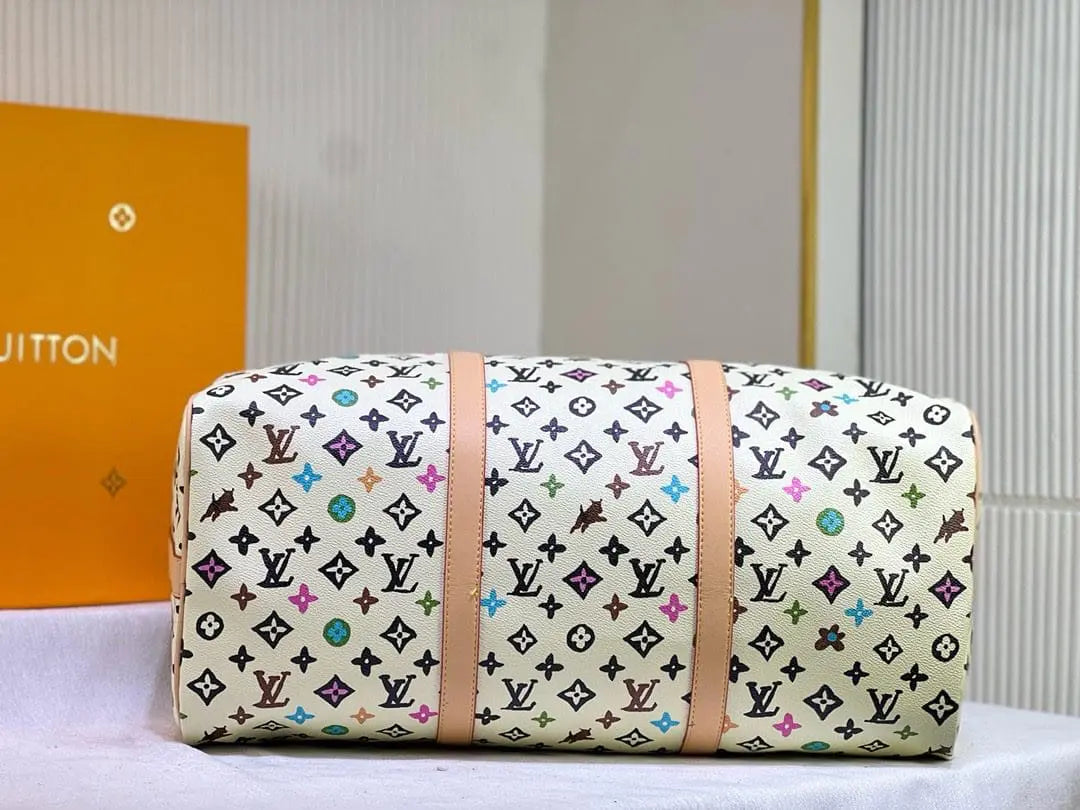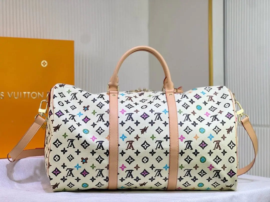 実用的なキーポル・バンドリエール 45 トラベルバッグは、モノグラム・クラギー キャンバスでフレッシュな印象を与えます。クラシックなモノグラムをカラフルに再解釈したタイラー。取り外し可能な波型のネームタグがアクセントになっています。2つのロールドレザートップハンドルと、取り外し・調節可能なショルダーストラップで、様々な持ち方が可能です。