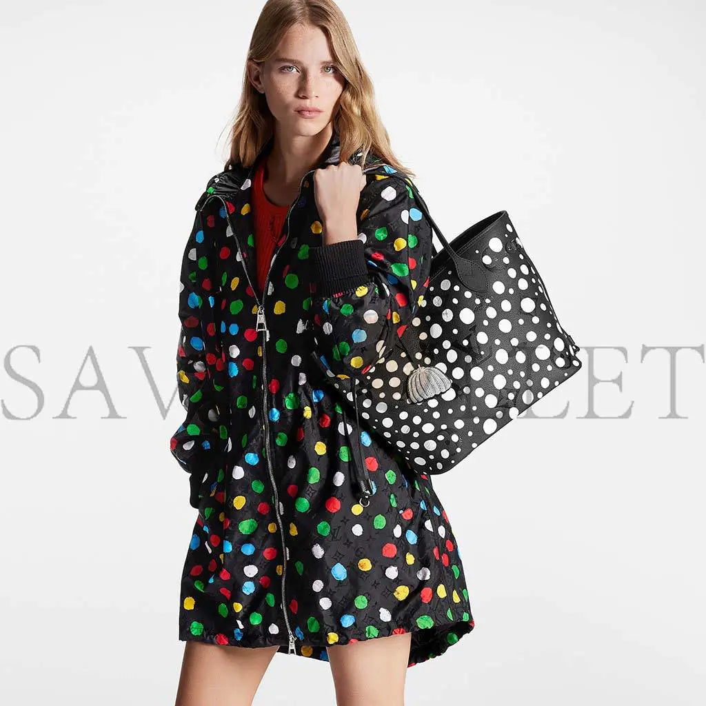 ルイ・ヴィトン x 草間彌生の新作コレクションは、芸術と卓越した職人技の結晶です。著名な日本人アーティストである草間彌生は、象徴的なドットを用いて無限の無限性を想起させることで知られています。LVxYK ネヴァーフル MMは、光沢のあるブラックのモノグラム・アンプラント牛革に、白いドットの銀河をあしらっています。非常に機能的なトートバッグで、取り外し可能なポーチと、草間彌生のもう一つのシンボルであるカボチャ型のチャームが付属しています。