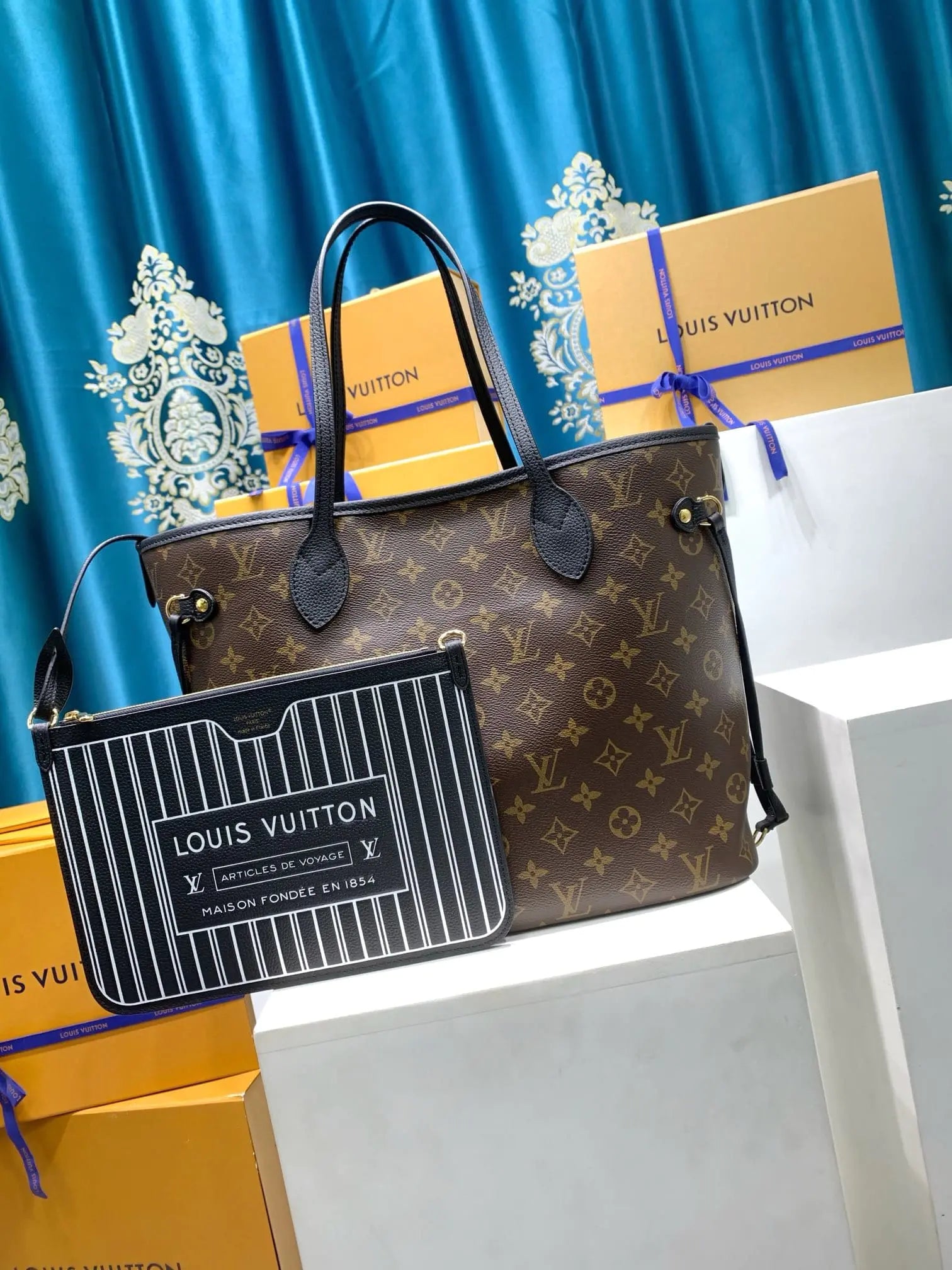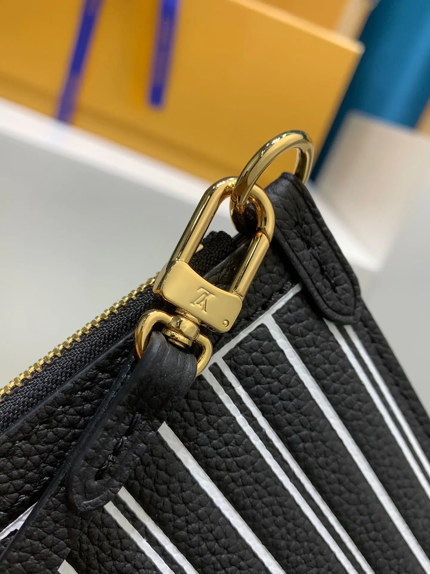 ネヴァーフル インサイド アウト MMの汎用性の高いエディションは、リバーシブル仕様の新作です。片面はシグネチャーのモノグラム キャンバス、もう片面はグレインレザーを使用。アイコニックなスタイルに、取り外し可能なポーチが付属。外ポケットとして、または小ぶりなショルダーバッグとしてお使いいただけます。