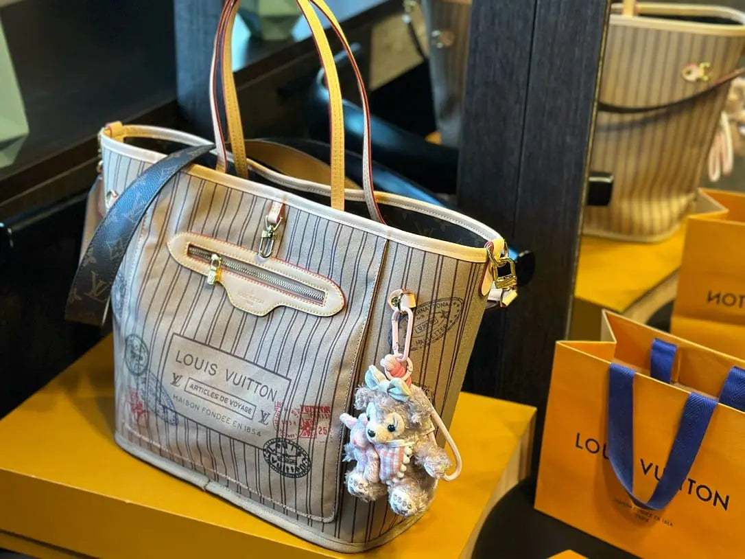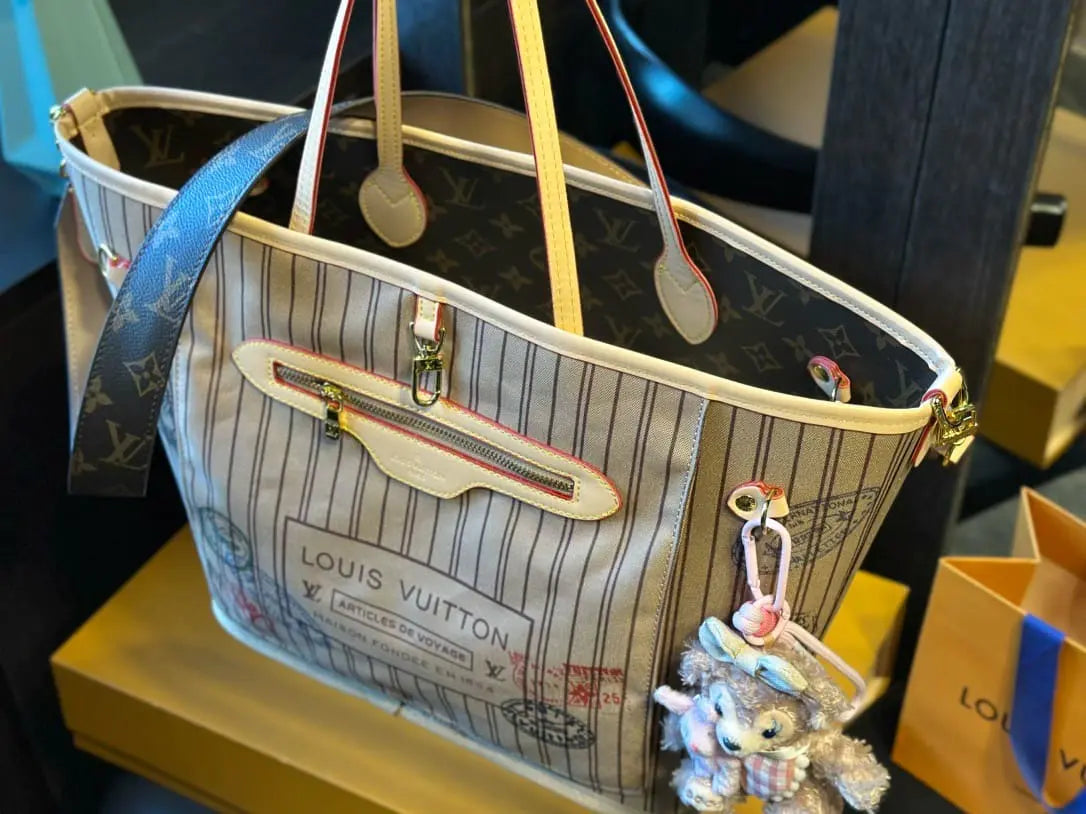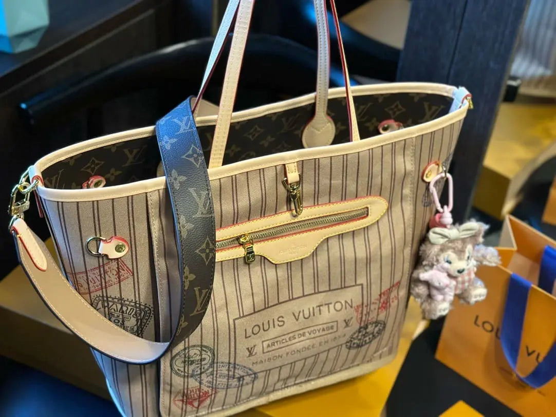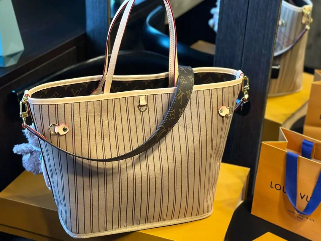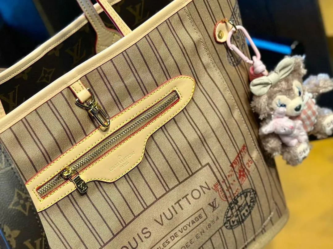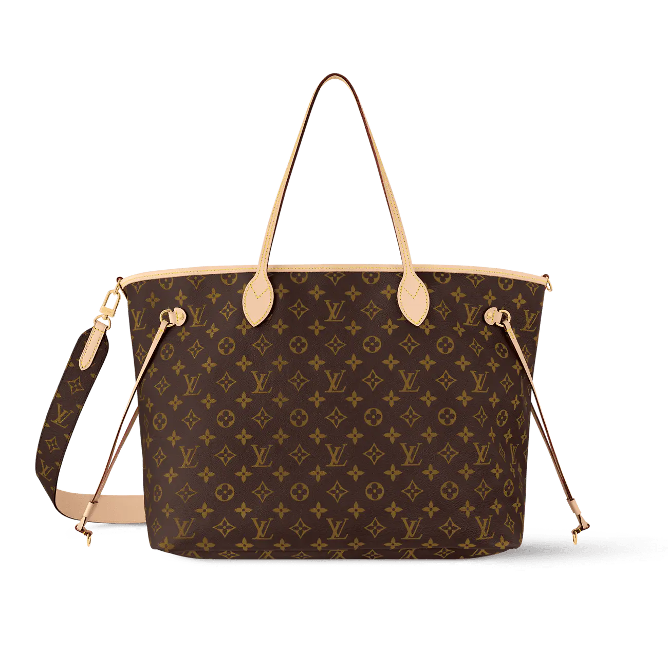 アイコニックなネヴァーフル・ハンドバッグが、今シーズンに向けて新たなリバーシブルデザインで生まれ変わりました。ゴールドトーンの金具が輝くこのネヴァーフル・バンドリエール・インサイド・アウトGMは、シグネチャーのモノグラム・キャンバスを使用し、裏面にはカラフルなスタンプパターンがあしらわれています。汎用性の高いこのモデルは、サイドフックでホーボースタイルにもアレンジできます。取り外し可能なストラップでショルダーバッグとしてもお使いいただけます。