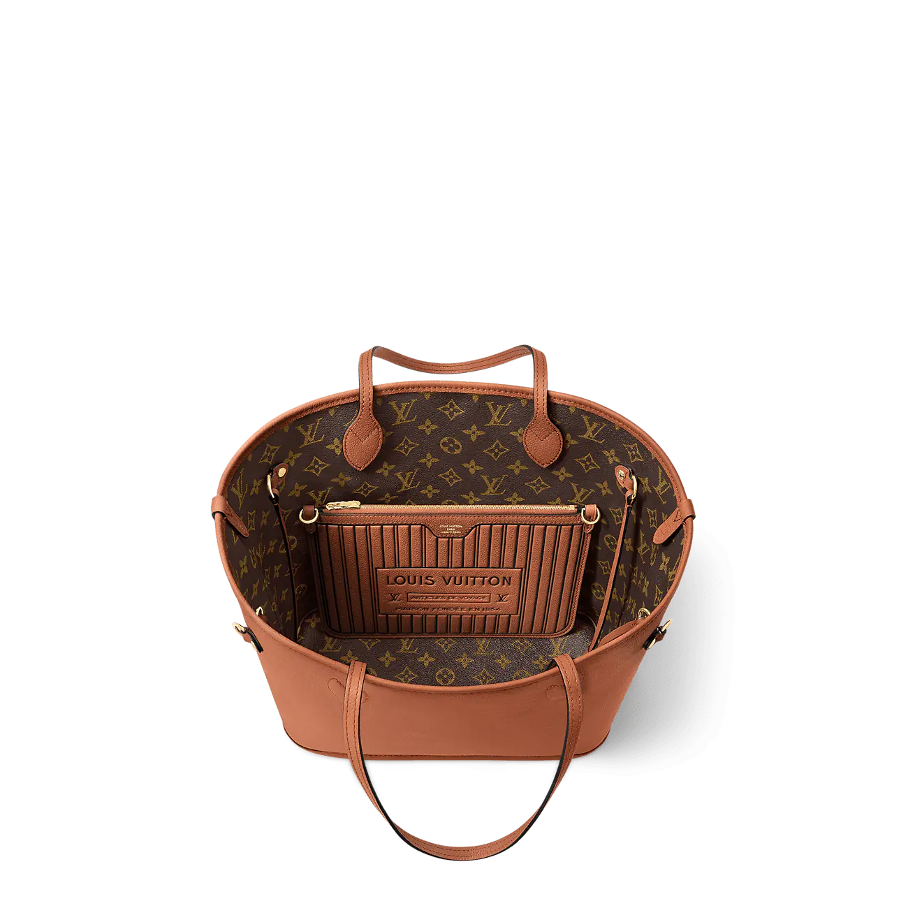 ネヴァーフル インサイド アウト MMの汎用性の高いエディションは、リバーシブル仕様の新作です。片面はシグネチャーのモノグラム キャンバス、もう片面はグレインレザーを使用。アイコニックなスタイルに、取り外し可能なポーチが付属。外ポケットとして、または小ぶりなショルダーバッグとしてお使いいただけます。