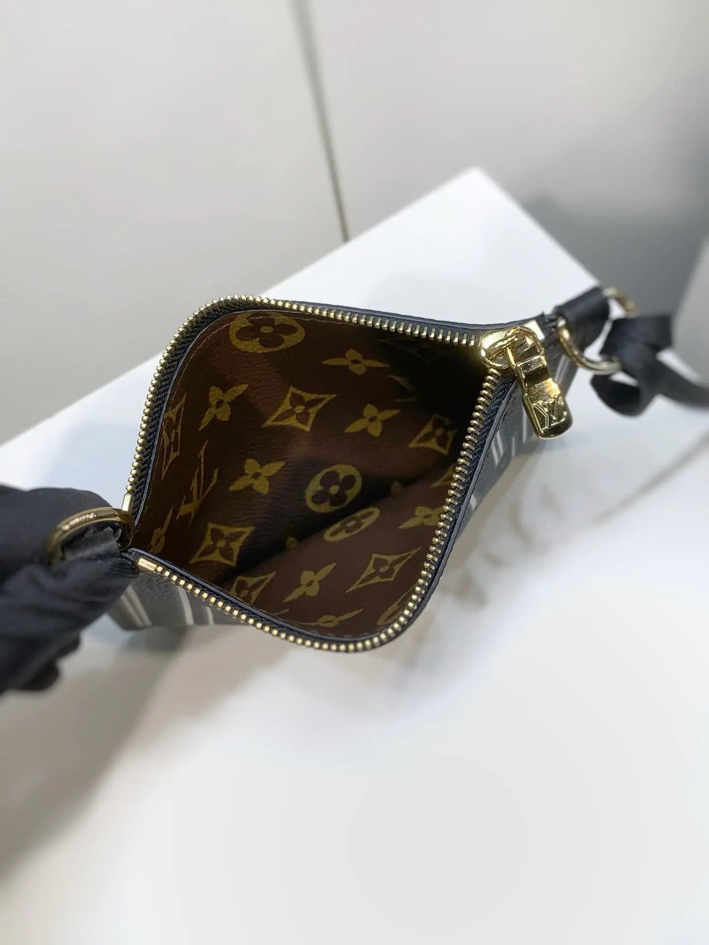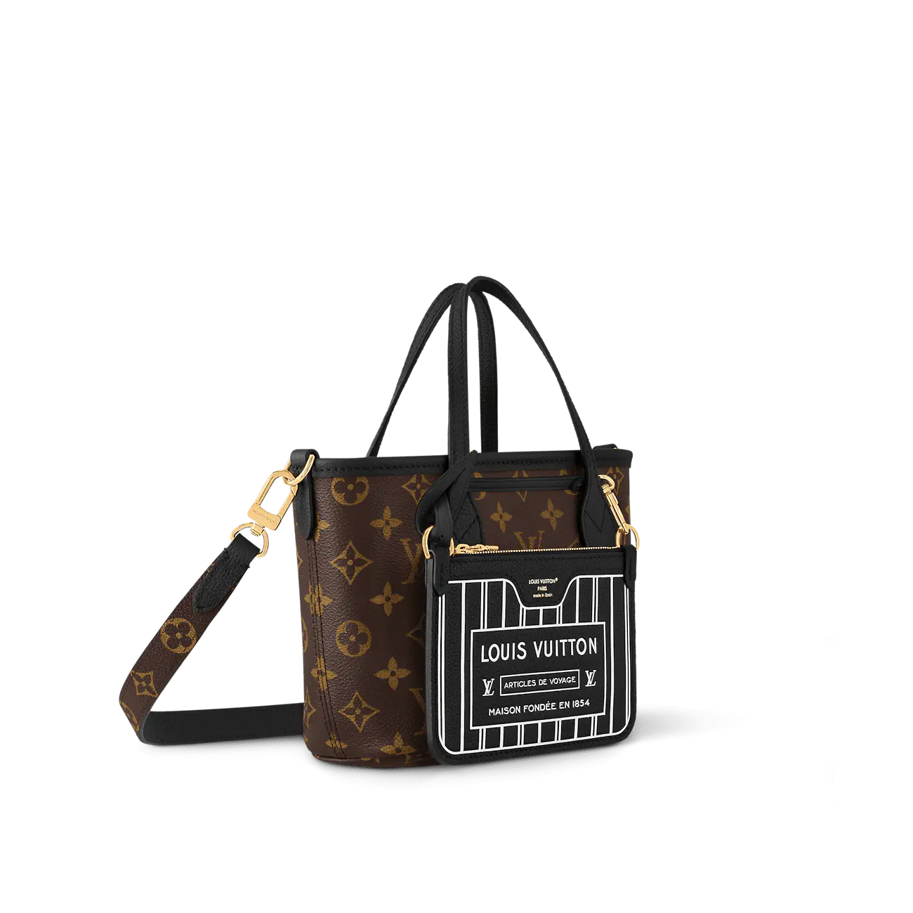 今シーズンは、アイコニックなネヴァーフル ハンドバッグがリバーシブル仕様に。バンドリエール インサイド アウト BB エディションは、シグネチャーのモノグラム キャンバスを使用し、裏面にはグレインレザーをあしらいました。取り外し可能なジップ付きポーチは、単体でも、外ポケットとしてもお使いいただけます。きらめくゴールドトーンの金具が、バッグ全体の印象を一層引き立てます。取り外し可能なストラップで、クロスボディバッグとしてもお使いいただけます。