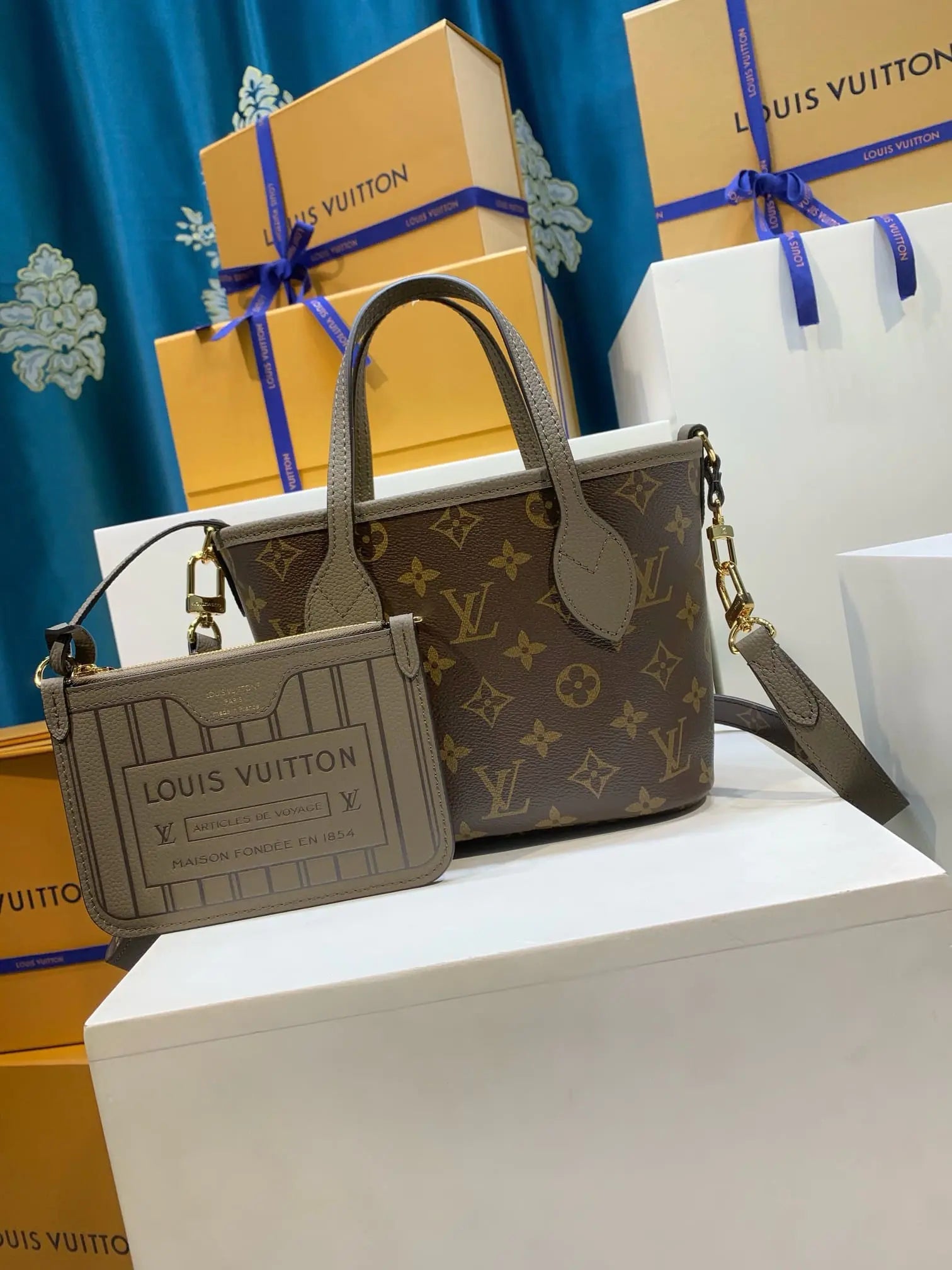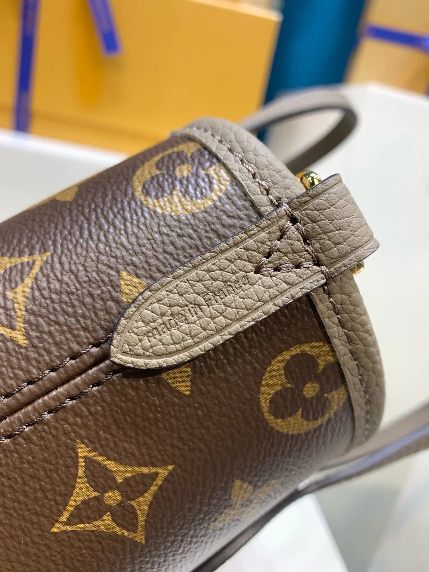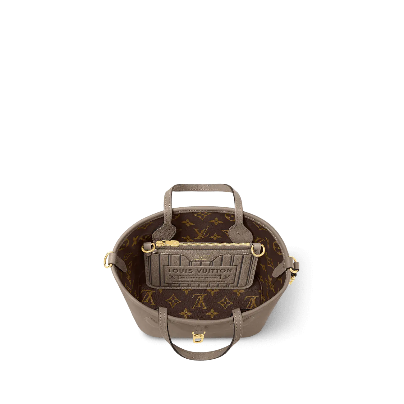 今シーズンは、アイコニックなネヴァーフル ハンドバッグがリバーシブル仕様に。バンドリエール インサイド アウト BB エディションは、シグネチャーのモノグラム キャンバスを使用し、裏面にはグレインレザーをあしらいました。取り外し可能なジップ付きポーチは、単体でも、外ポケットとしてもお使いいただけます。きらめくゴールドトーンの金具が、バッグ全体の印象を一層引き立てます。取り外し可能なストラップで、クロスボディバッグとしてもお使いいただけます。