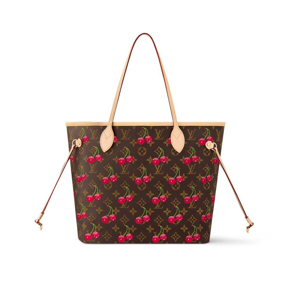 アイコニックな「ネヴァーフルMM」ハンドバッグは、ルイ・ヴィトン x 村上隆コレクションの復刻版から、喜びに満ちたコードを用いて鮮やかに再解釈されています。クラシカルなモノグラム・コーテッドキャンバスに、村上隆特有の鮮やかな色彩美を湛えた明るいチェリーモチーフを遊び心たっぷりに散りばめ、大胆なストライプのライニングがさりげなく調和しています。天然牛革のトリムが、時代を超えたスタイルを際立たせています。