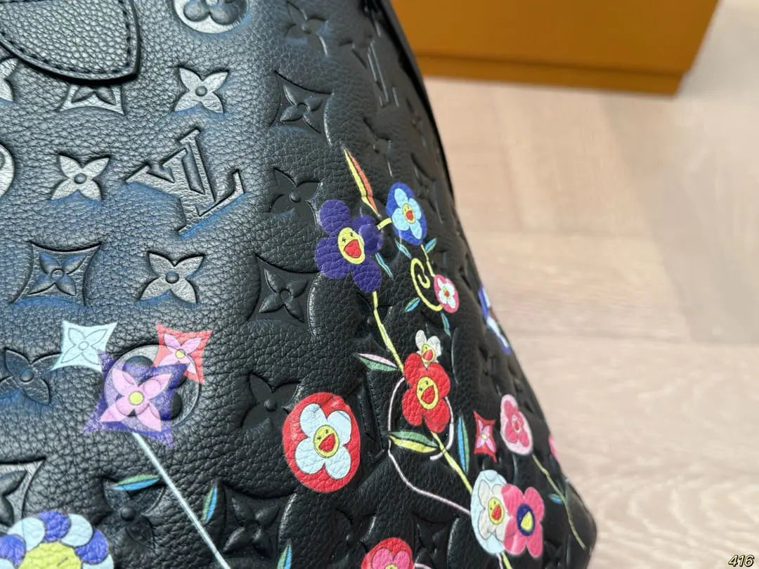 ルイ・ヴィトン x 村上隆 コレクションの復刻版として、メゾンのアイコニックなネヴァーフル MM ハンドバッグが、村上隆の独特のスーパーフラットスタイルとモノグラム・フラワーのモチーフを融合させたカラフルなプリントで、喜びに満ちた新たな解釈で生まれ変わりました。モノグラム・アンプラント レザーにエレガントなゴールドトーンの金具をあしらったこのタイムレスなトートバッグは、洗練されたトップハンドルと、ボリューム感を調節できる象徴的なサイドレースが特徴です。取り外し可能な便利なポーチが付属します。