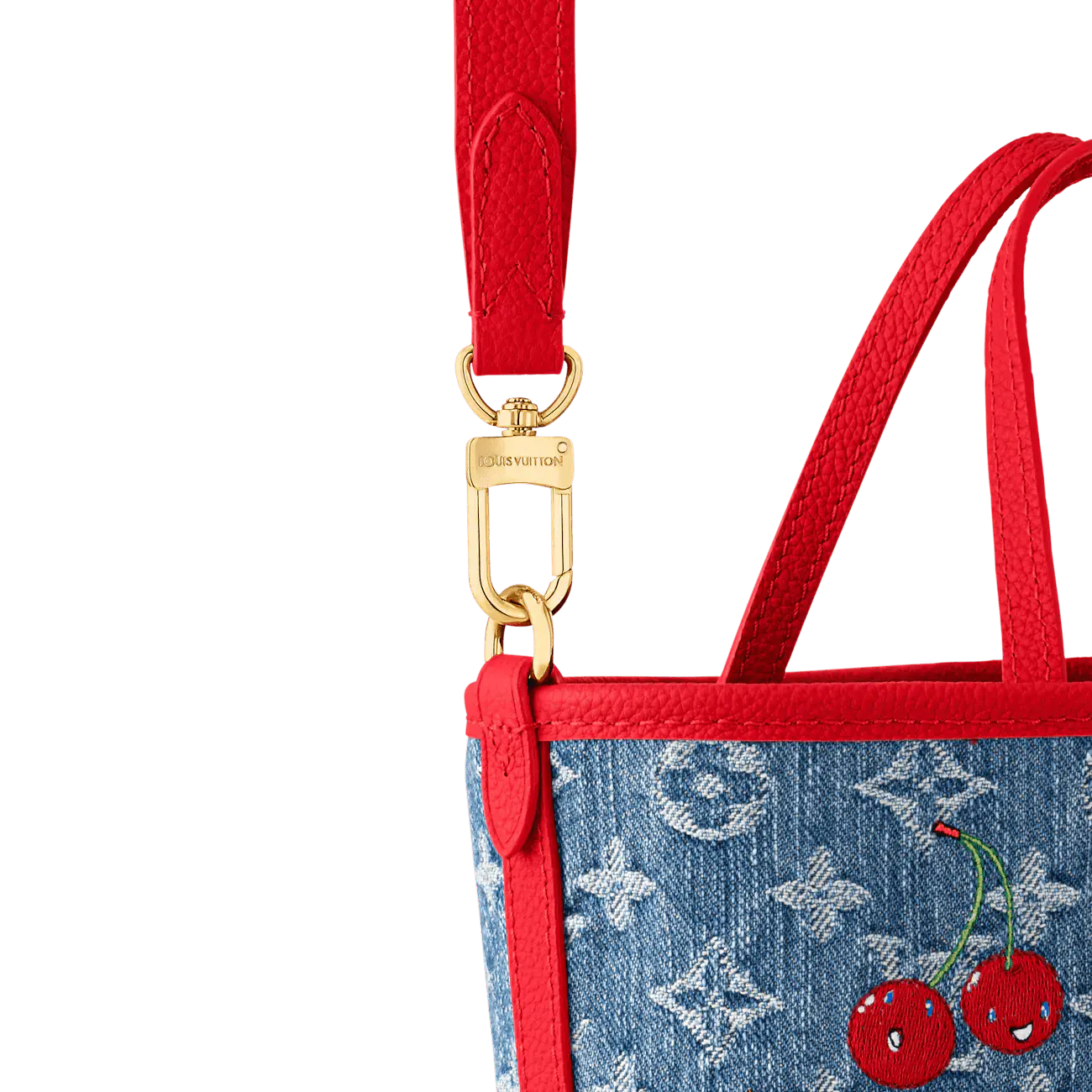 ルイ・ヴィトン x 村上隆コレクションの限定復刻版から、印象的なシグネチャーが織りなす「ネヴァーフル インサイド アウト BB」は、遊び心あふれるステートメントピースへと昇華されています。モノグラムデニムを使用し、村上隆の象徴的なスタイルで刺繍された桜モチーフが鮮やかな色彩を放ち、レッドのカーフレザートリムがアクセントを添えています。取り外し可能なデニムのジップポーチが、この限定モデルを完成させます。