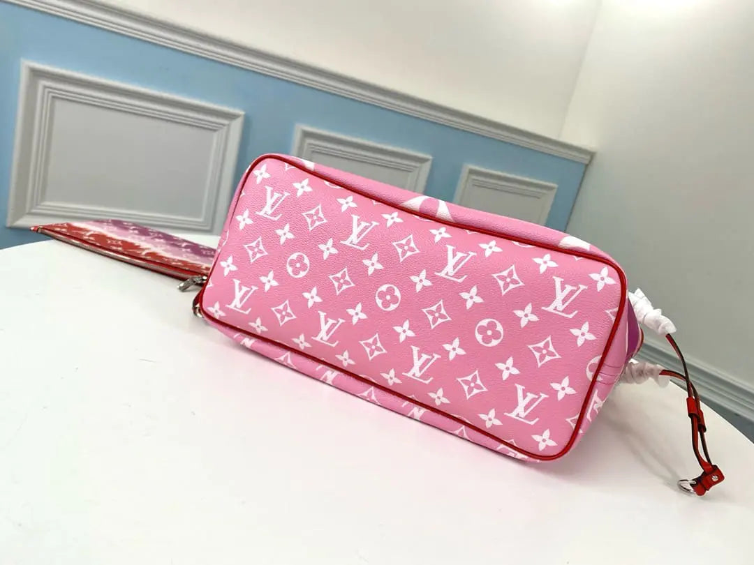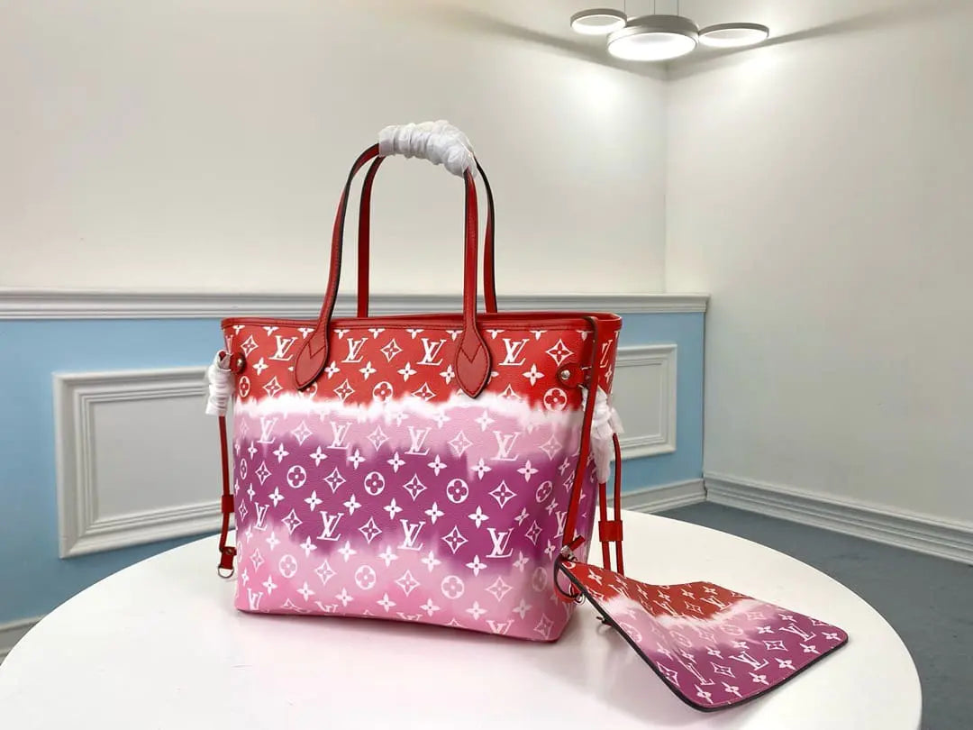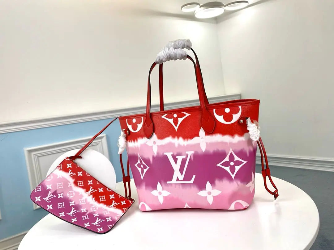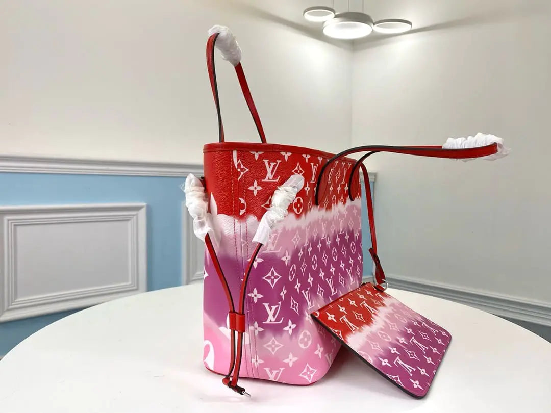 布を染める前に結び、折りたたむという日本の古来の技法からインスピレーションを得たLVエスカル コレクションは、タイダイ モノグラム キャンバスを使用したネヴァーフル MM トートに夏の雰囲気を添えています。紐を締めると、この多用途のトートバッグは小さめでスタイリッシュなシティバッグになります。