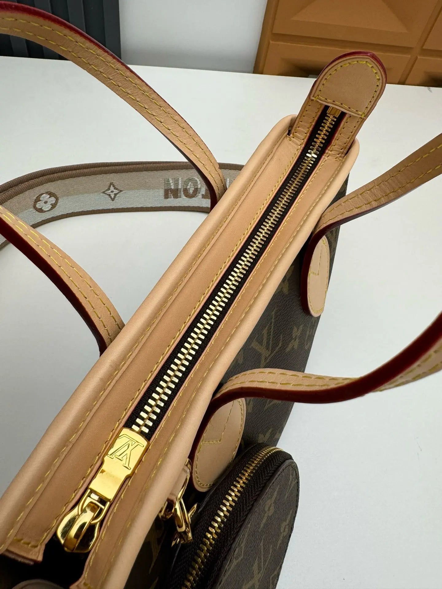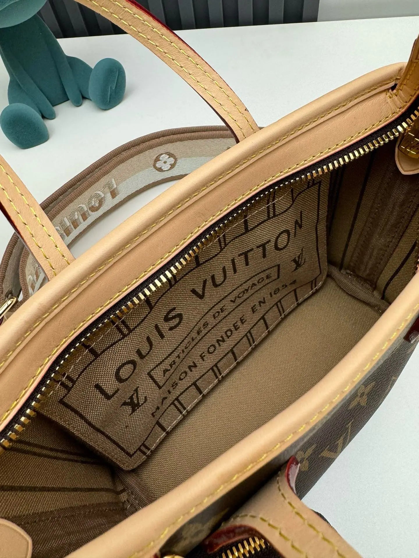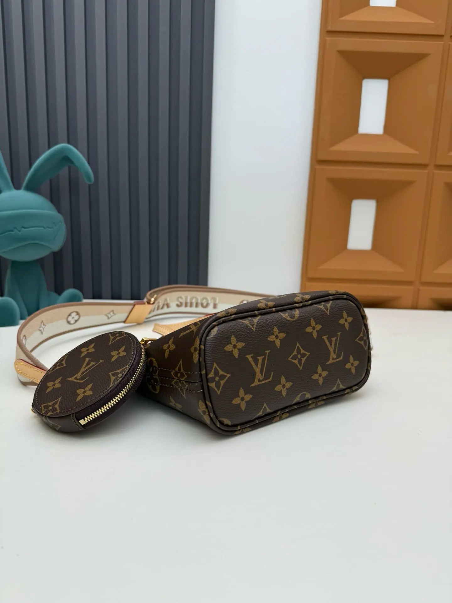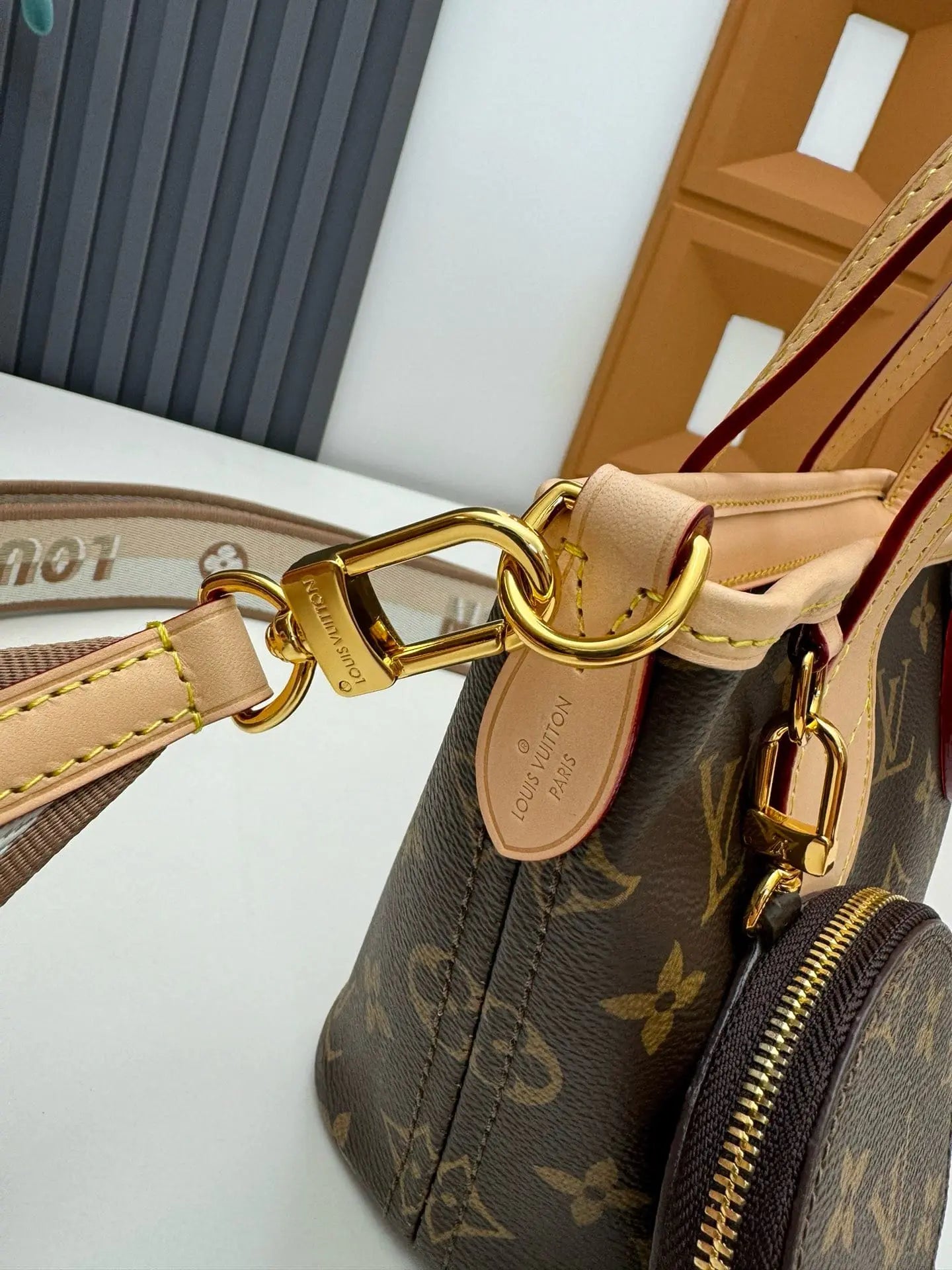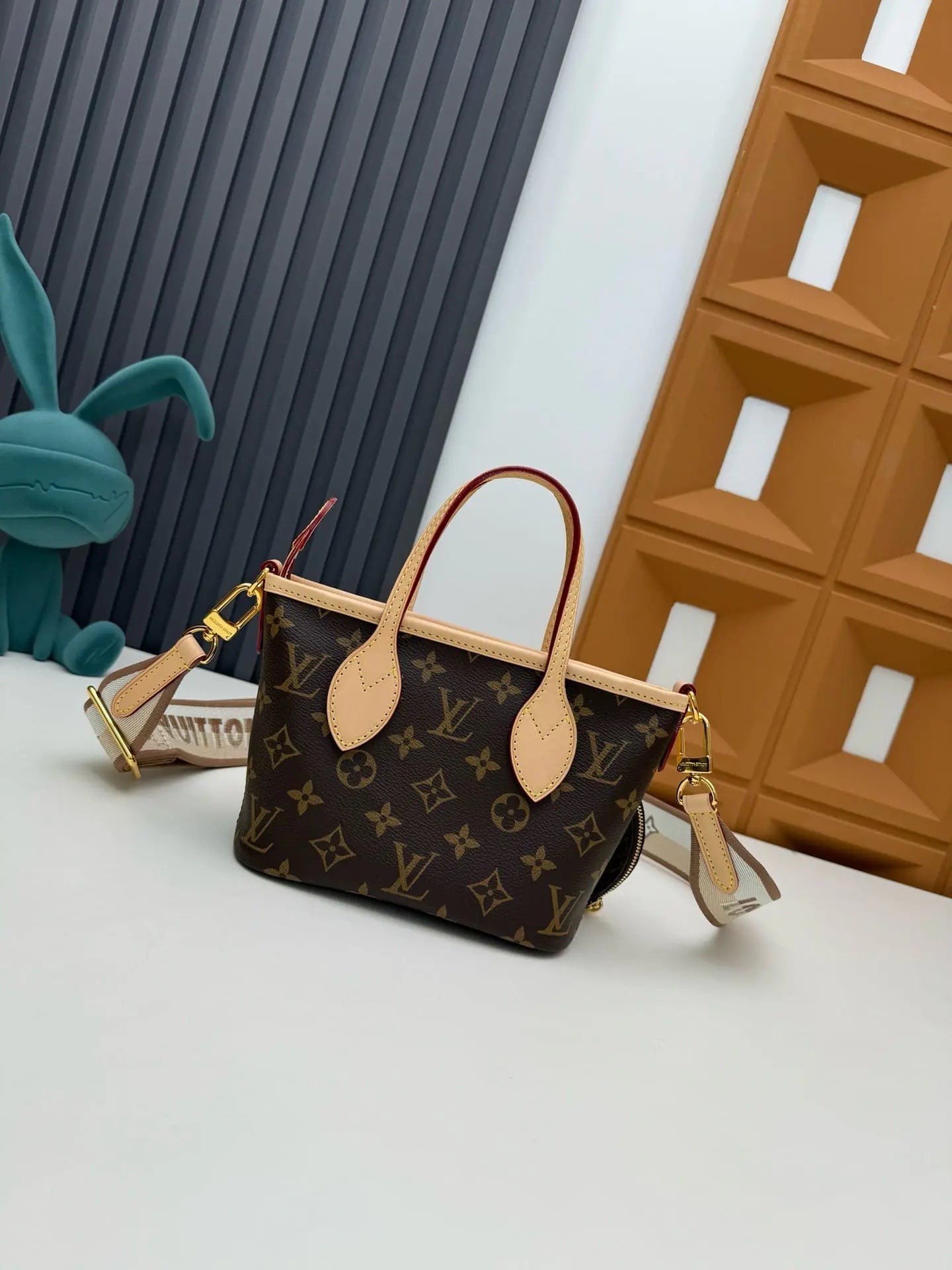 今シーズン、メゾンの永遠の人気アイテム「ネヴァーフル」がミニトートバッグとして生まれ変わります。「ネヴァーフル BB」ハンドバッグです。このミニバージョンは、調節・取り外し可能なテキスタイルストラップと、Dリングに取り付けられた遊び心のあるコインケースが特徴です。スマートフォンやコンパクトな財布など、ちょっとした必需品を収納するのにちょうど良いサイズです。