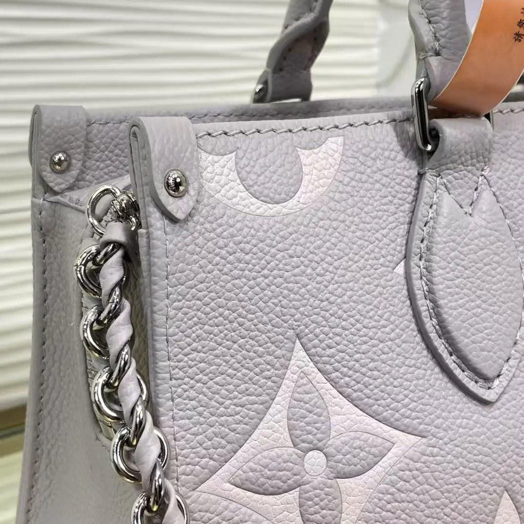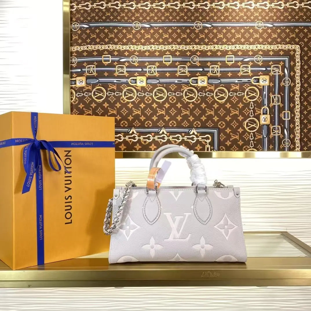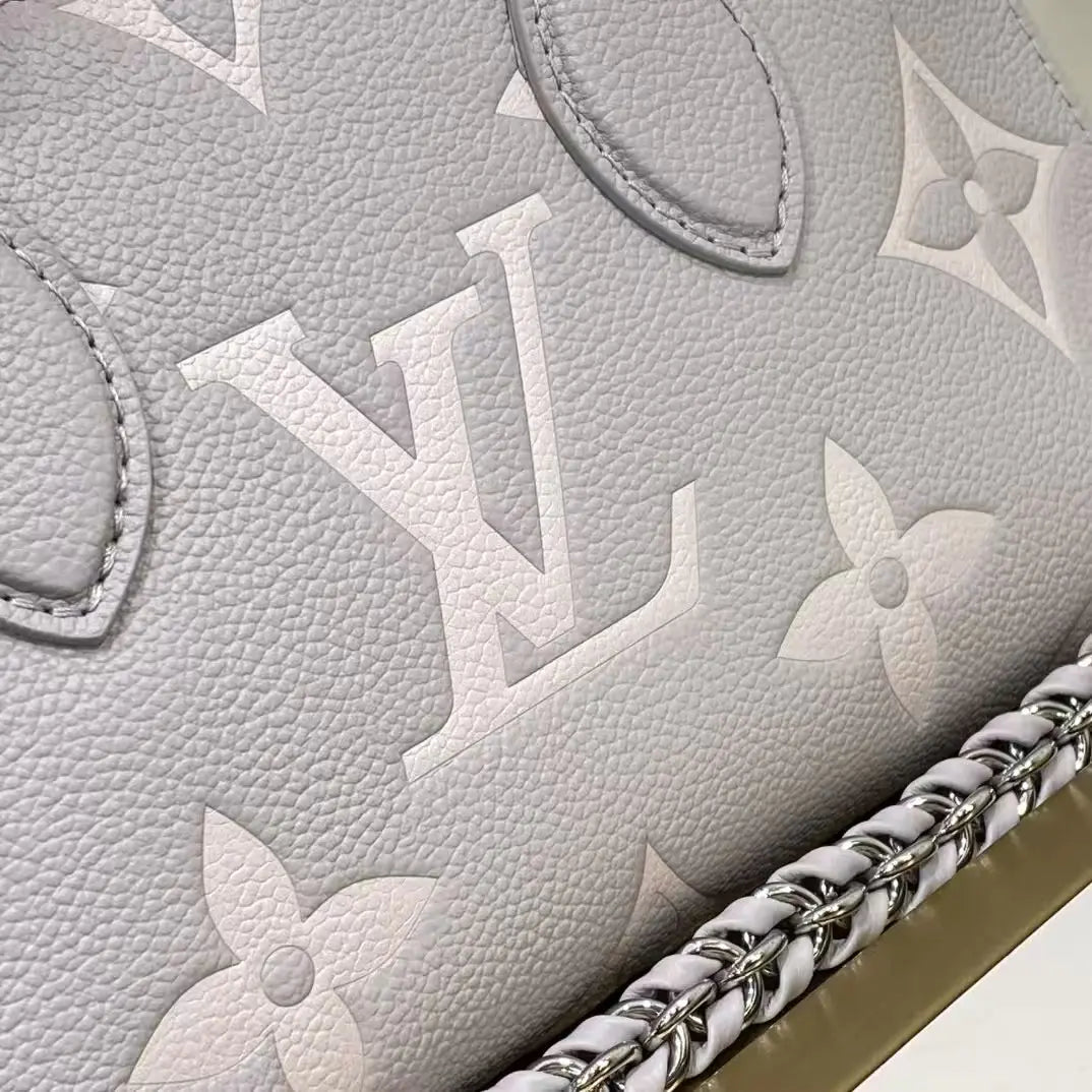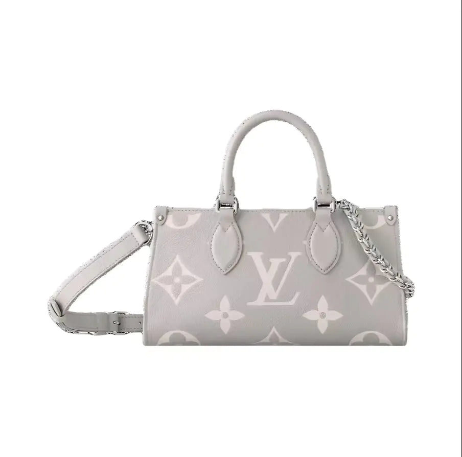 美しいプロポーションのイーストウエストシルエットで表現された「OnTheGo イーストウエスト トート」が登場。モノグラム・アンプラント レザーに、同系色のジャイアントモノグラムモチーフをエンボス加工したコンパクトなモデルは、毎日の必需品を整理整頓できる内部空間を誇ります。2つの可動式トップハンドルと、取り外し可能なチェーンとレザーのストラップにより、様々な持ち方に対応します。