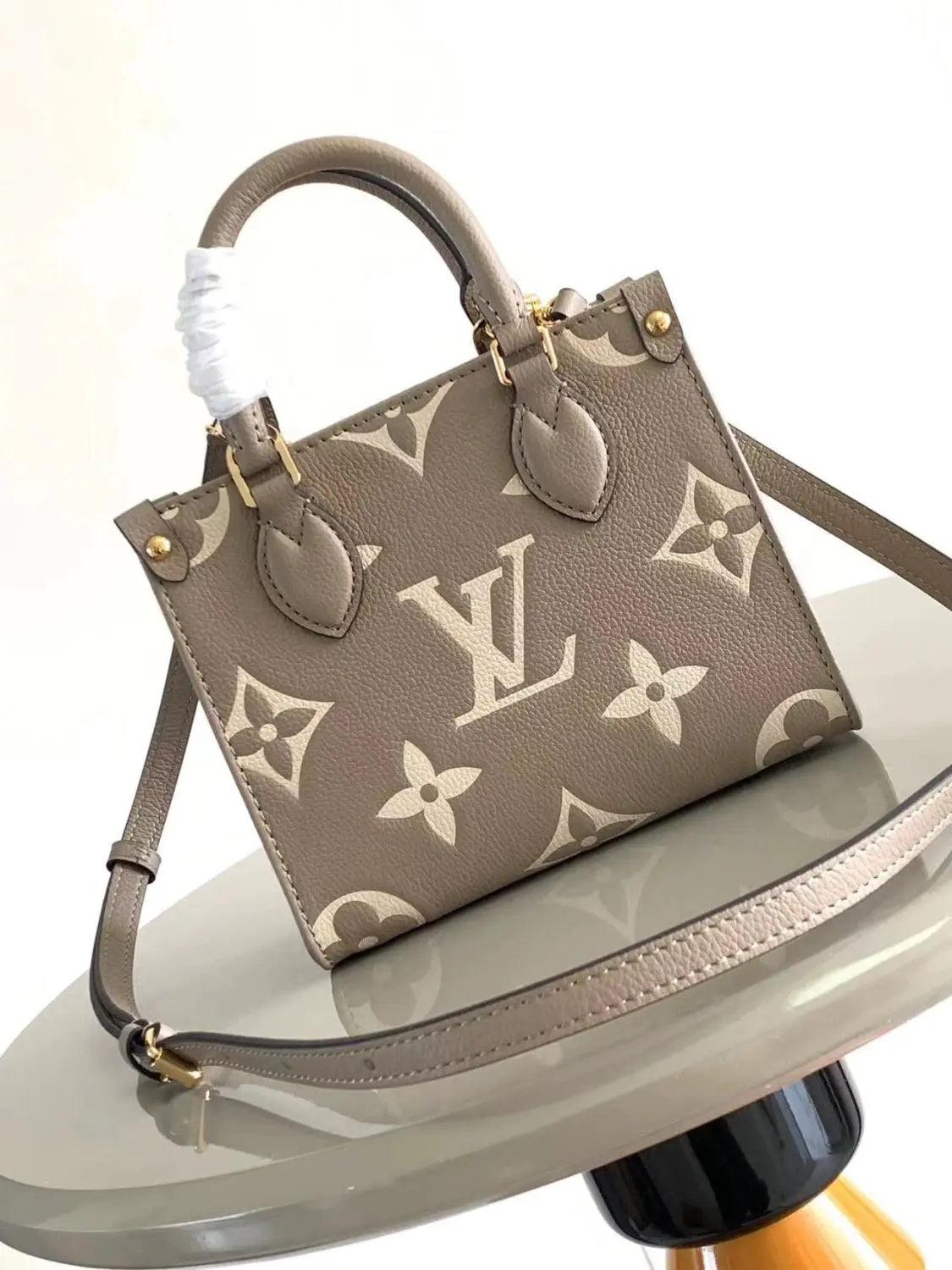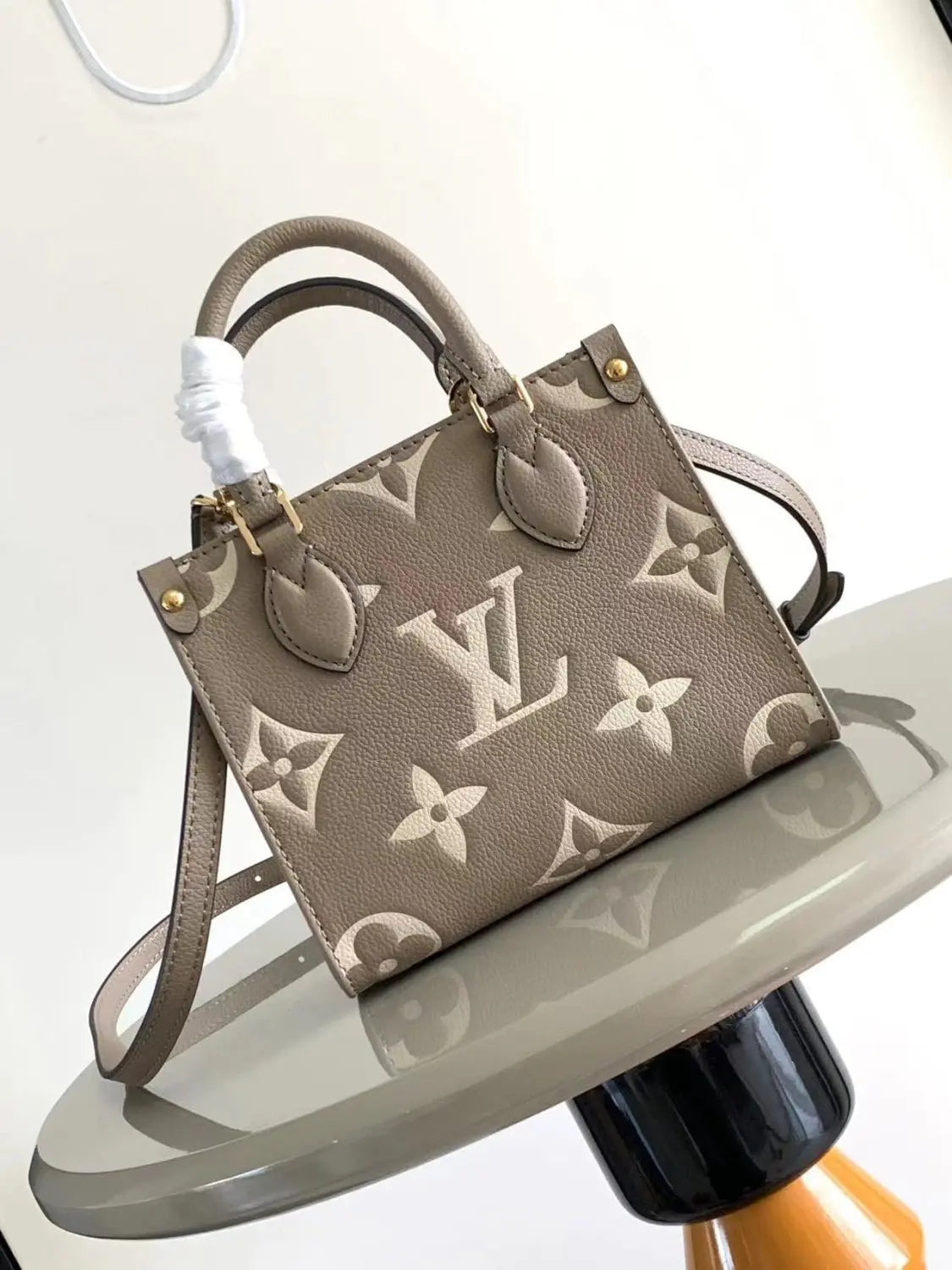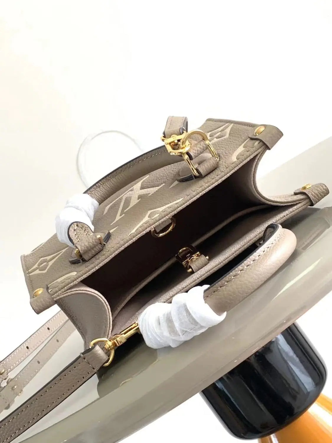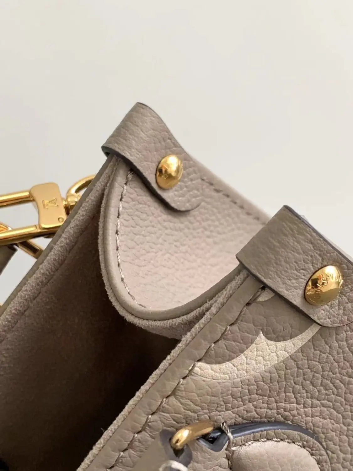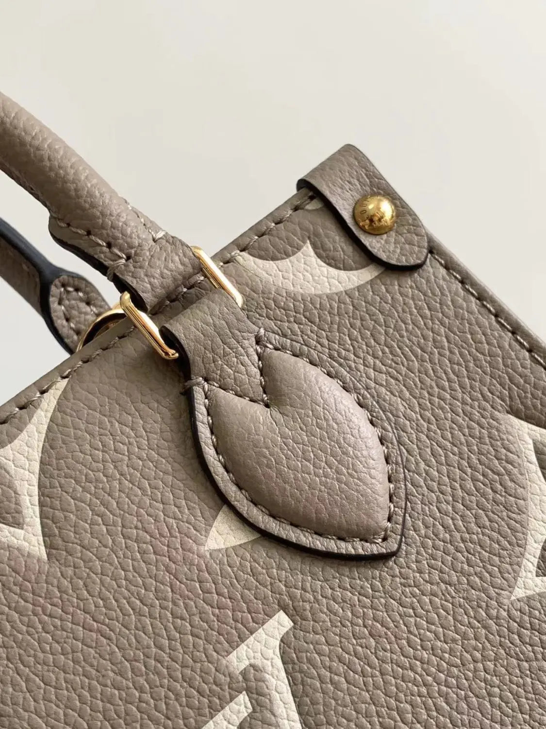 OnTheGo BBは、モノグラム・アンプラントレザーにモノグラムのエンボス加工を施した、トレンド感のあるマイクロバッグです。特徴的なハンドルマウントやコーナーのリベット留めレザータブなど、フルサイズモデルと同じディテールを踏襲したこの小さなトートバッグは、スマートフォンやコンパクトな財布も収納できます。取り外し・調節可能なストラップで、肩掛けも可能です。