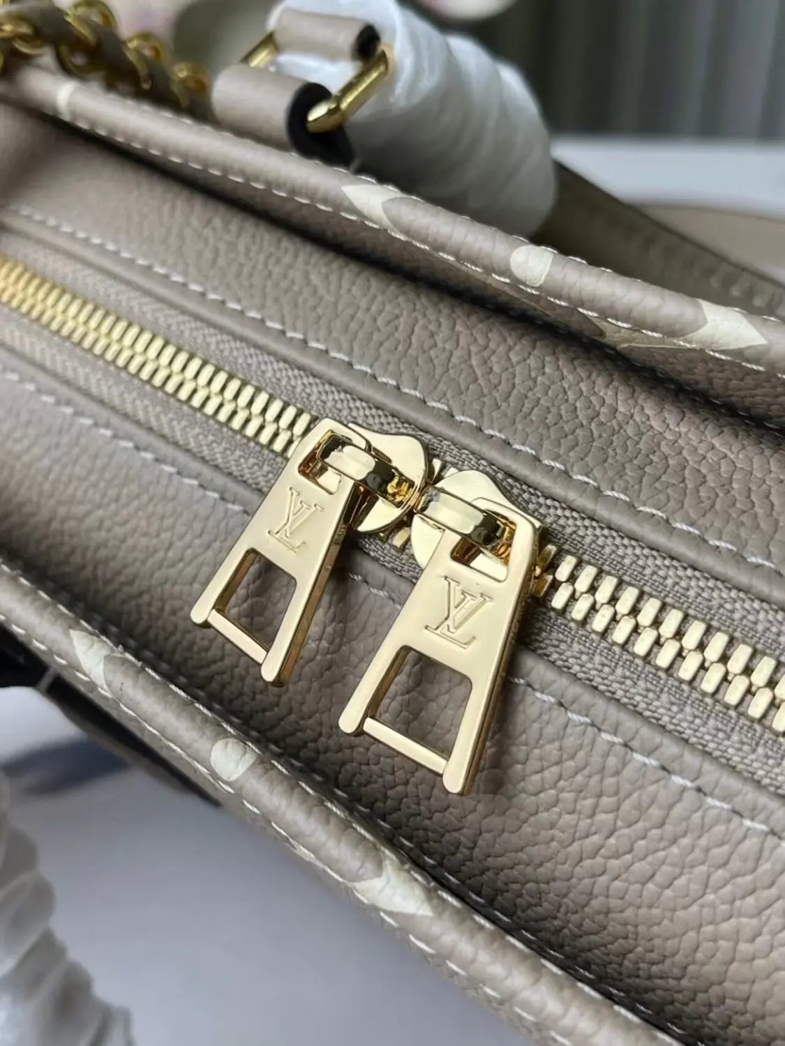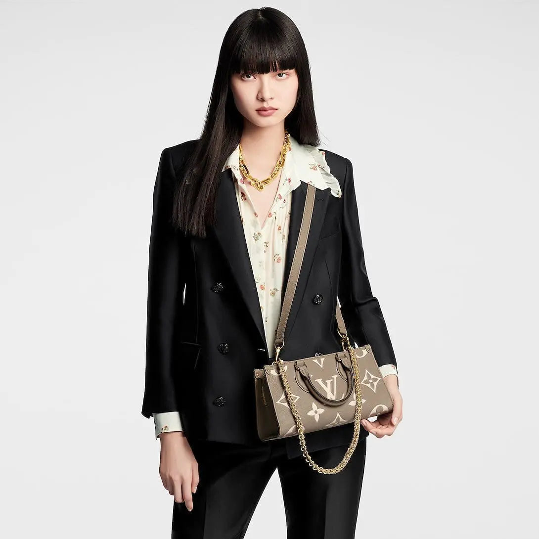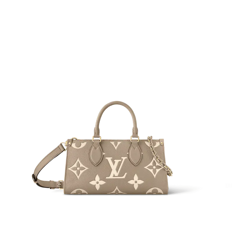 美しいプロポーションのイーストウエストシルエットで表現された「OnTheGo イーストウエスト トート」が登場。モノグラム・アンプラント レザーに、同系色のジャイアントモノグラムモチーフをエンボス加工したコンパクトなモデルは、毎日の必需品を整理整頓できる内部空間を誇ります。2つの可動式トップハンドルと、取り外し可能なチェーンとレザーのストラップにより、様々な持ち方に対応します。