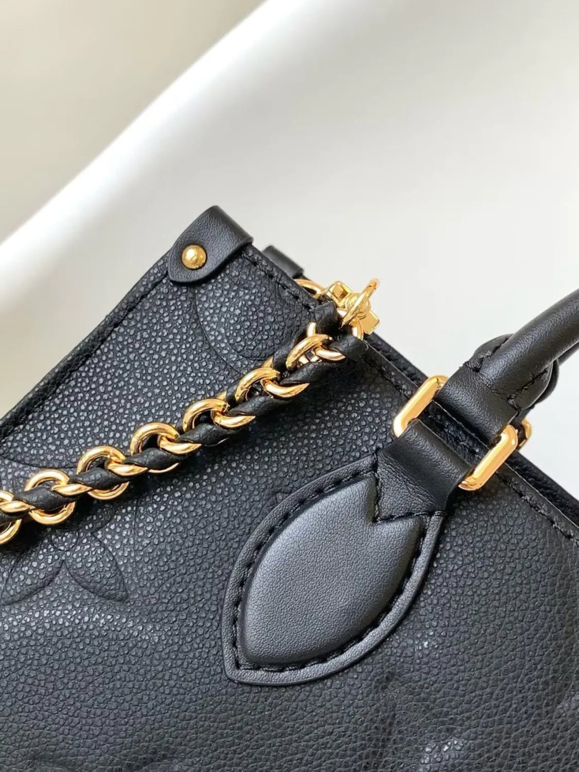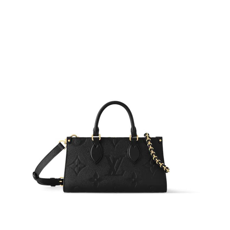 美しいプロポーションのイーストウエストシルエットで表現された「OnTheGo イーストウエスト トート」が登場。モノグラム・アンプラント レザーに、同系色のジャイアントモノグラムモチーフをエンボス加工したコンパクトなモデルは、毎日の必需品を整理整頓できる内部空間を誇ります。2つの可動式トップハンドルと、取り外し可能なチェーンとレザーのストラップにより、様々な持ち方に対応します。