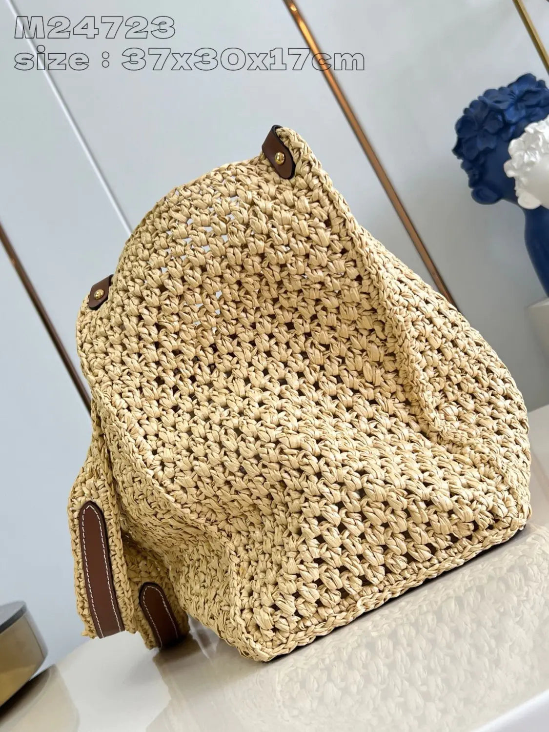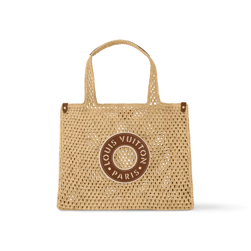 LVバイ・ザ・プール・コレクションの一つであるOnTheGo MMトートバッグは、100%天然ラフィアを手編みで仕上げています。リベット留めのコーナー部分は牛革製で、フロントの円形の「Louis Vuitton Paris」パッチも同様です。OnTheGo MMは、13インチのノートパソコンとビーチタオル、その他の必需品を収納できます。