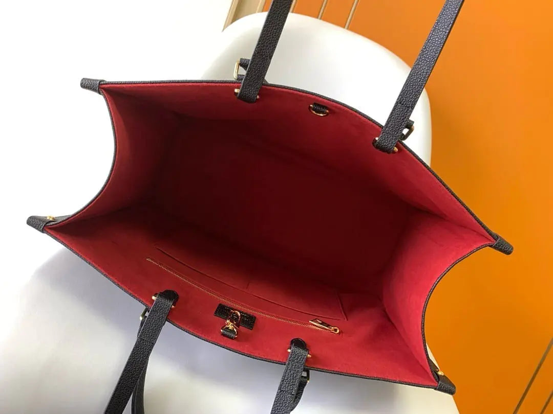 オンザゴー トートのバイカラーバージョンは、モノグラム・アンプラント レザーを使用し、特大のモノグラム・フラワーとLVイニシャルをエンボス加工で施しています。ビジネス、ショッピング、旅行など、あらゆるシーンで活躍するスタイリッシュで多用途なこのバッグは、ゆったりとしたキャリーオール。2本のトロンハンドルとロングショルダーストラップが付属し、様々な持ち運び方に対応します。