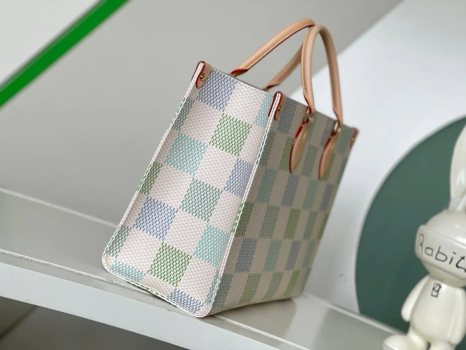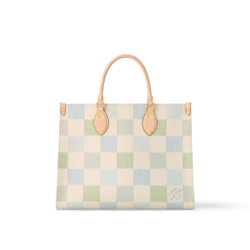 OnTheGo MMトートバッグは、ダミエ・ジャイアント・キャンバスを使用し、4つの異なるパステルカラーを組み合わせた魅力的なカラーウェイで仕立てられています。天然皮革のトップハンドル2本に加え、ショルダーストラップも2本付属しています。13インチのノートパソコンが収まるサイズで、普段使いにぴったりの実用的なバッグです。