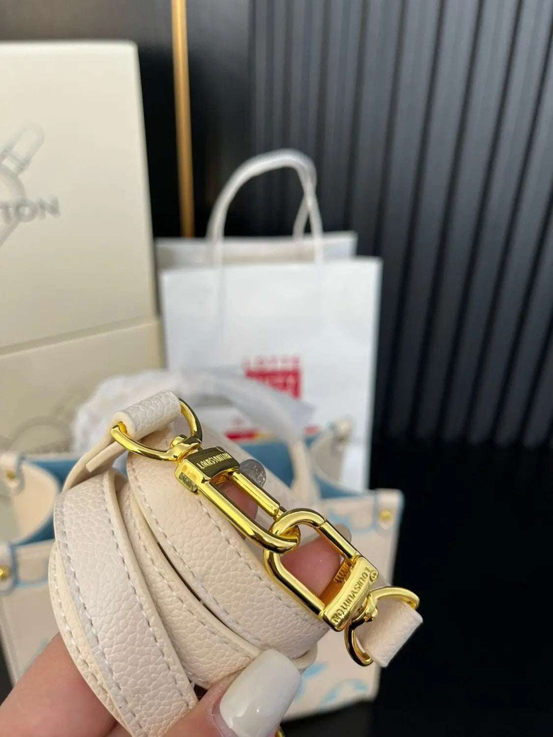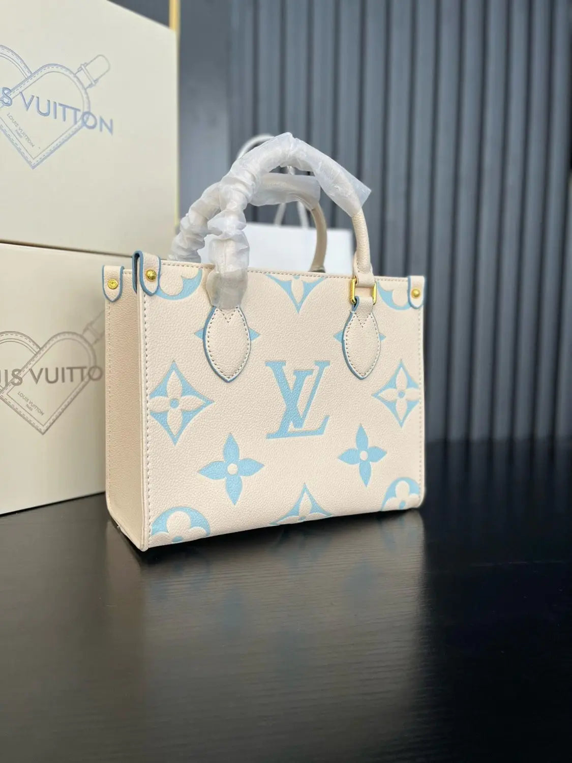 早春の涼しい風のように、パステルカラーのOnTheGo PMハンドバッグは、爽やかさと落ち着きを同時に与えてくれます。グレインレザーにプリントとエンボス加工されたモノグラム柄は、大胆でありながら控えめな印象を与えます。レザートップハンドルとロングショルダーストラップで、様々な持ち方をお楽しみいただけます。