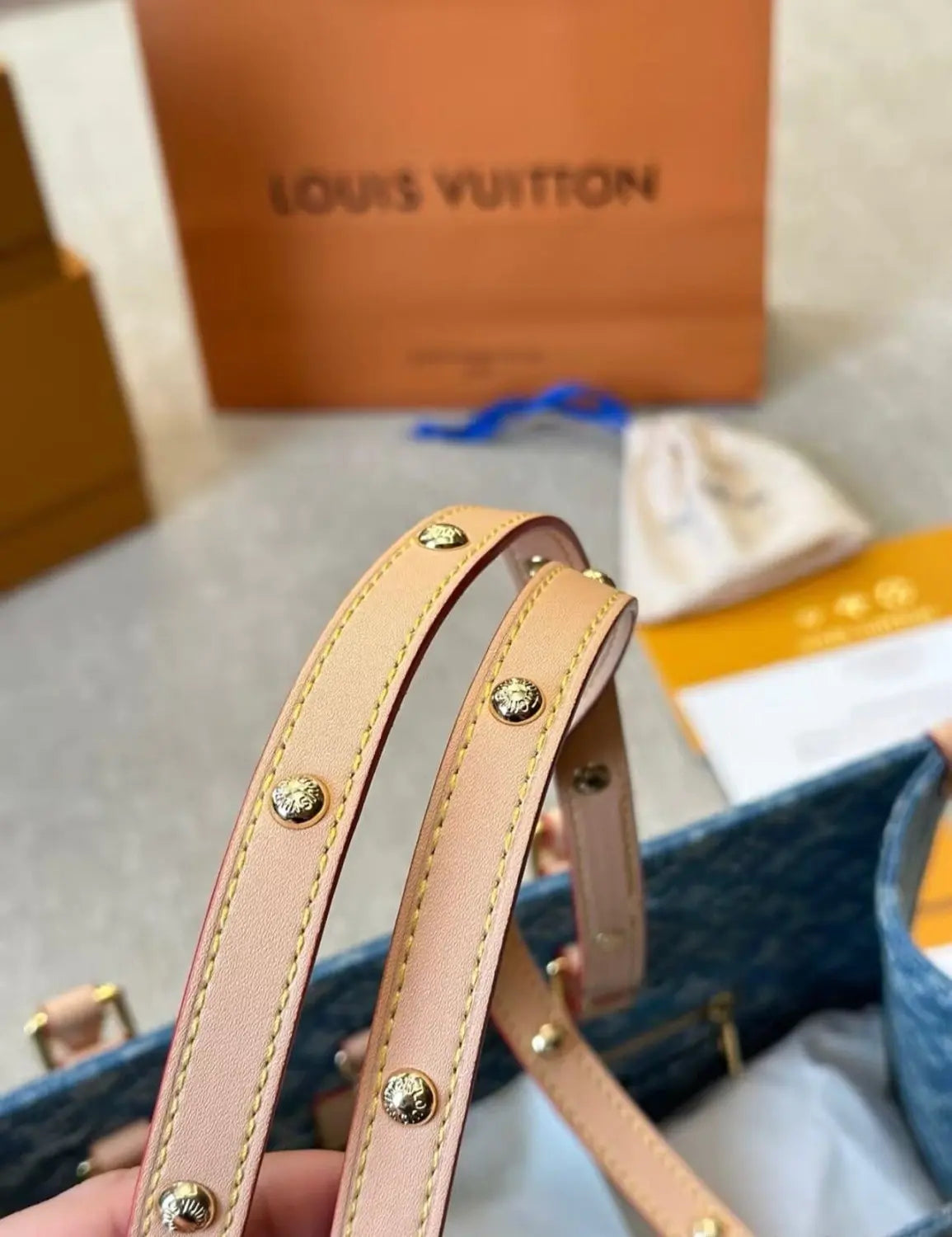 OnTheGo MMトートバッグは、新登場のモノグラム・デニムキャンバスを使用し、トップハンドルとハンドル取り付け部には天然牛革を使用しています。スクエアシェイプのOnTheGoは大容量で、ノートパソコンも収納可能です。ロールドレザーのトップハンドルと2本の長めのショルダーストラップで、様々な持ち方が可能です。