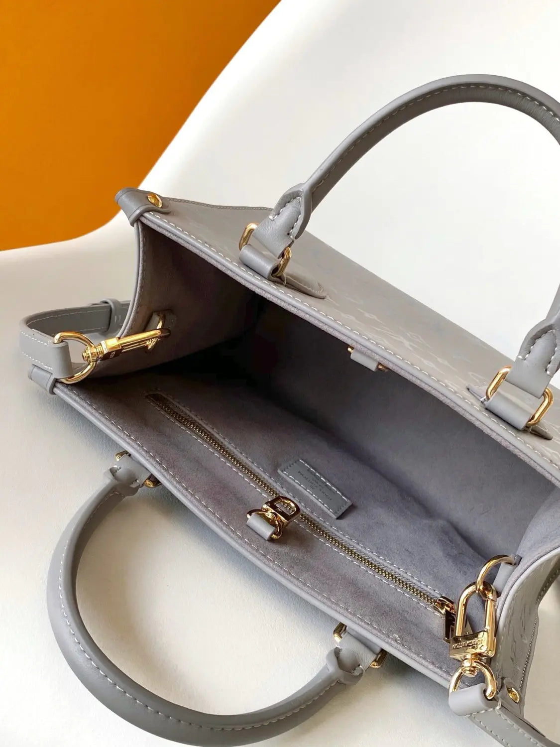 モノグラム・インクのラインナップの一つである「オンザゴーPM」は、季節感のあるトリアノングレーのマットなトーンオントーン仕上げが特徴です。滑らかなカーフレザーを使用し、メゾンを象徴するヴィンテージトランクを彷彿とさせる4つのリベット留めコーナータブが高級感を演出しています。スマートな内装は整理整頓性に優れ、紙幣やメモ用の大きなジッパー付きポケットを備えています。