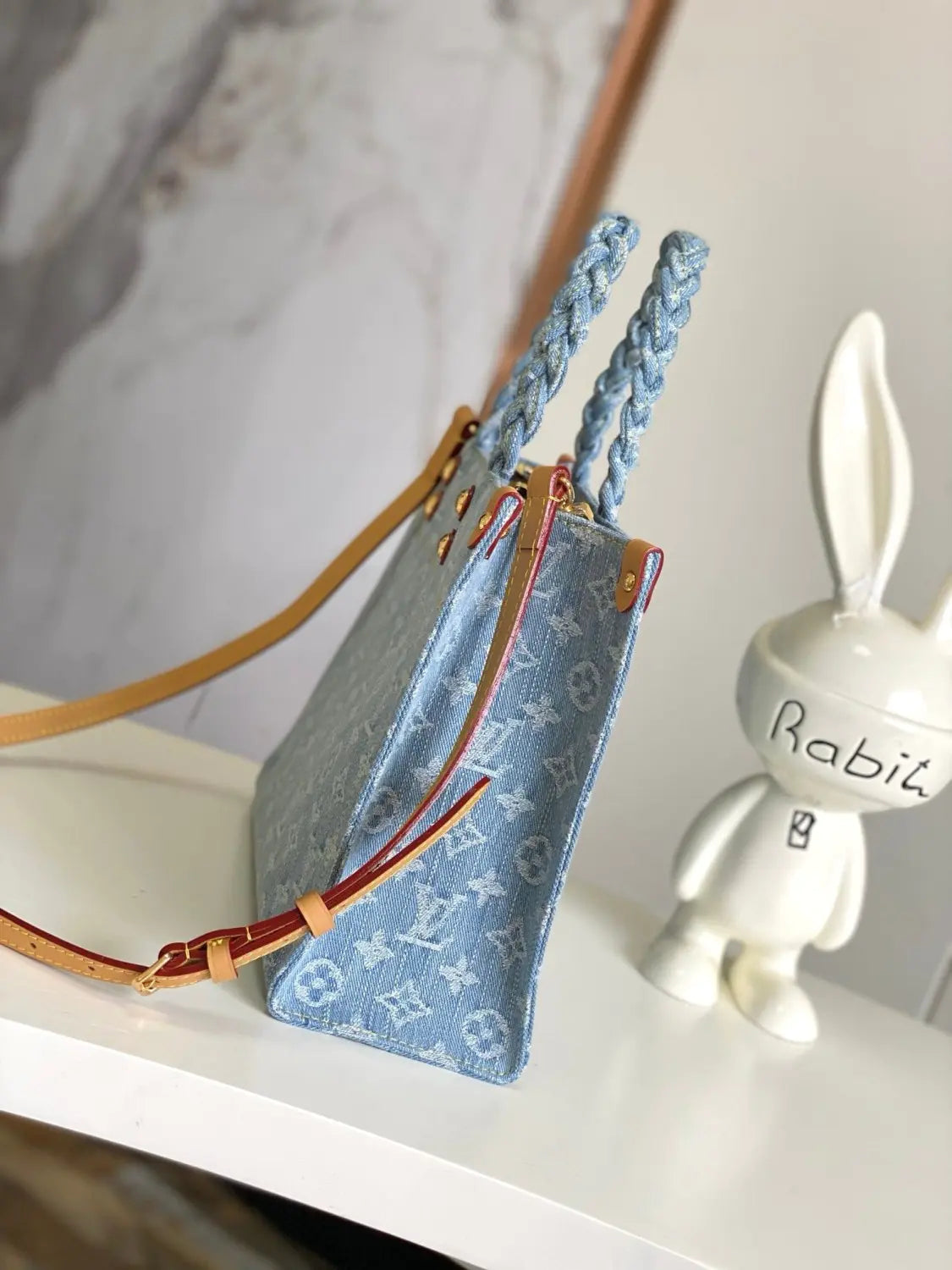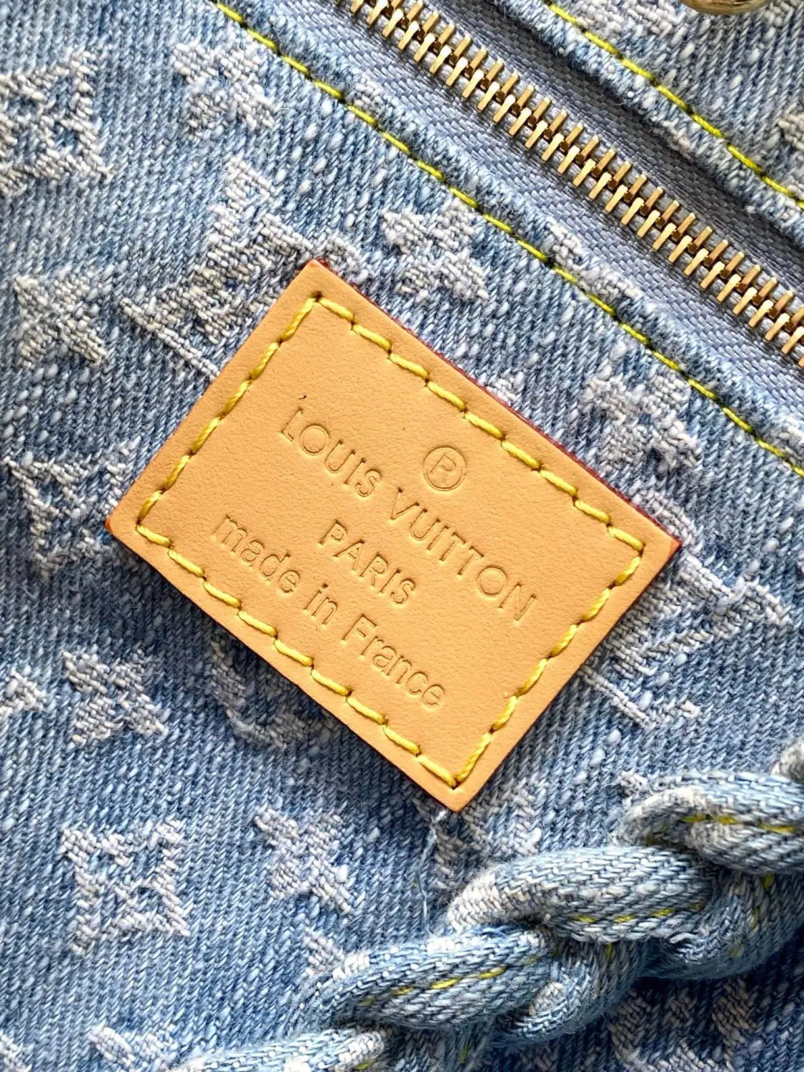 モノグラムデニムを使用した、キュートなLetGo PMトートバッグは、OnTheGoのデザインからインスピレーションを得ています。ストーンウォッシュのカラーウェイと編み込みハンドルが夏にぴったりです。財布とスマートフォンが入る十分な大きさで、しなやかなデザインが持ち心地を快適にします。リベット留めのコーナー部分は牛革を使用しています。