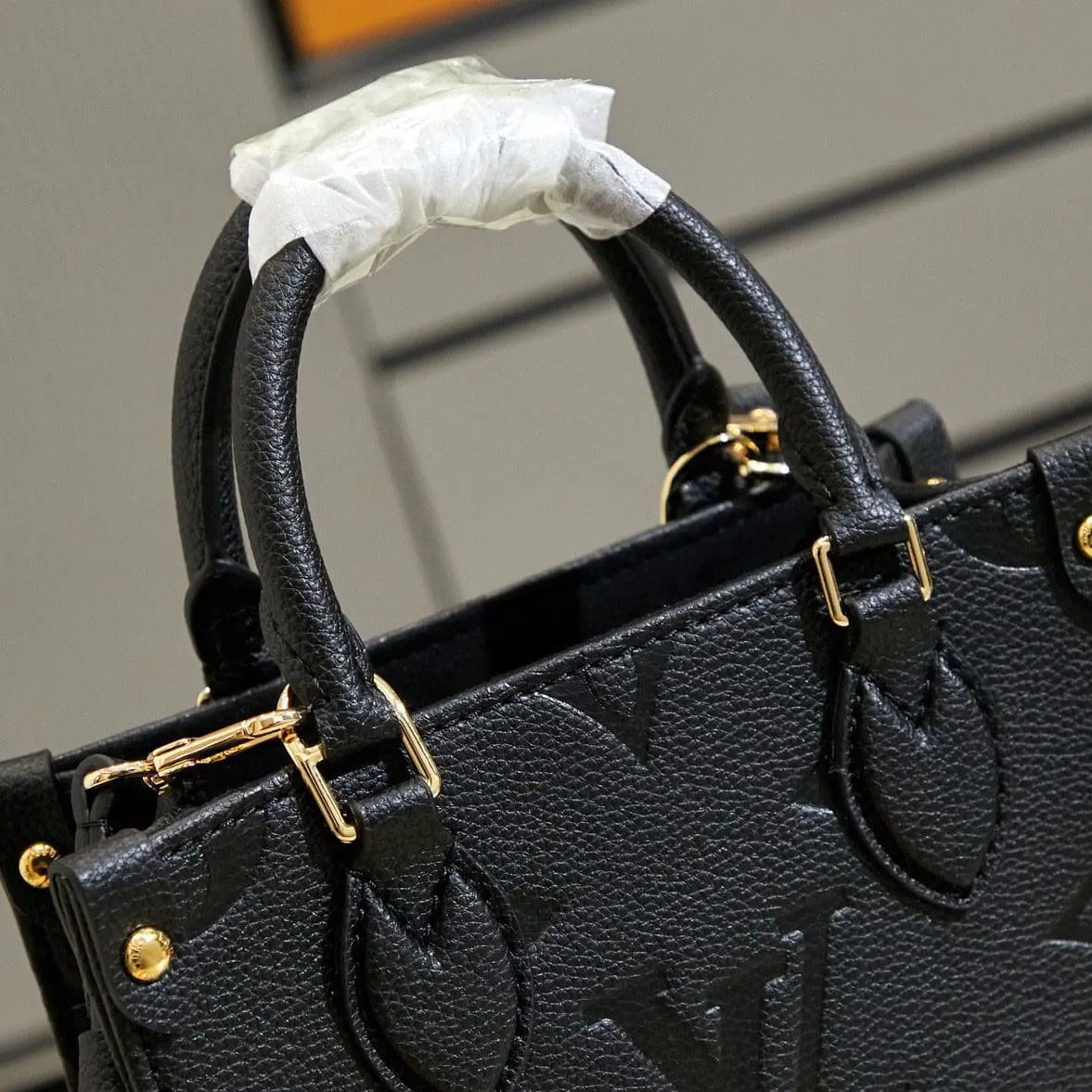 OnTheGo BBは、モノグラム・アンプラントレザーにモノグラムのエンボス加工を施した、トレンド感のあるマイクロバッグです。特徴的なハンドルマウントやコーナーのリベット留めレザータブなど、フルサイズモデルと同じディテールを踏襲したこの小さなトートバッグは、スマートフォンとコンパクトな財布を収納できます。取り外し・調節可能なストラップで、肩掛けも可能です。