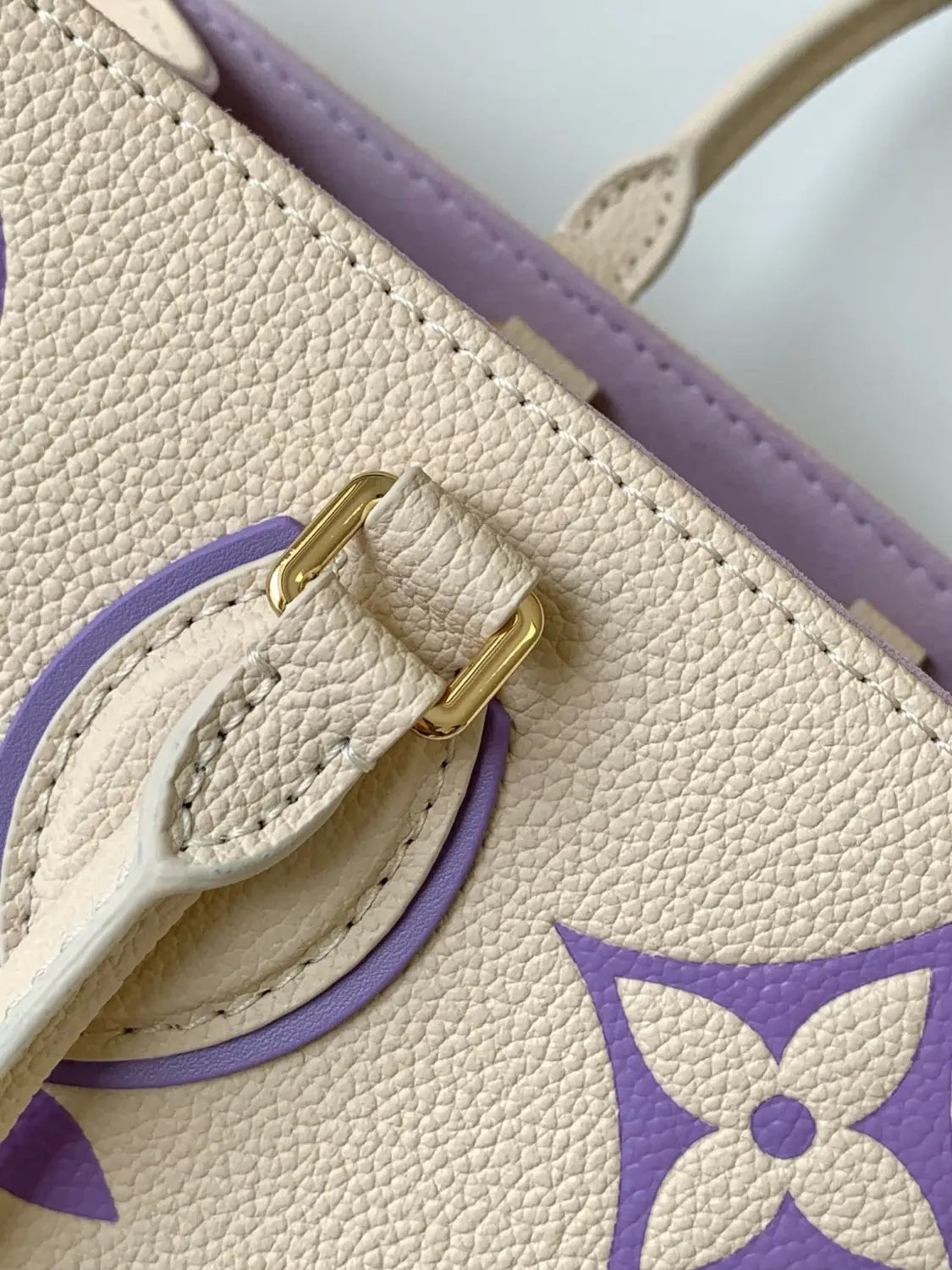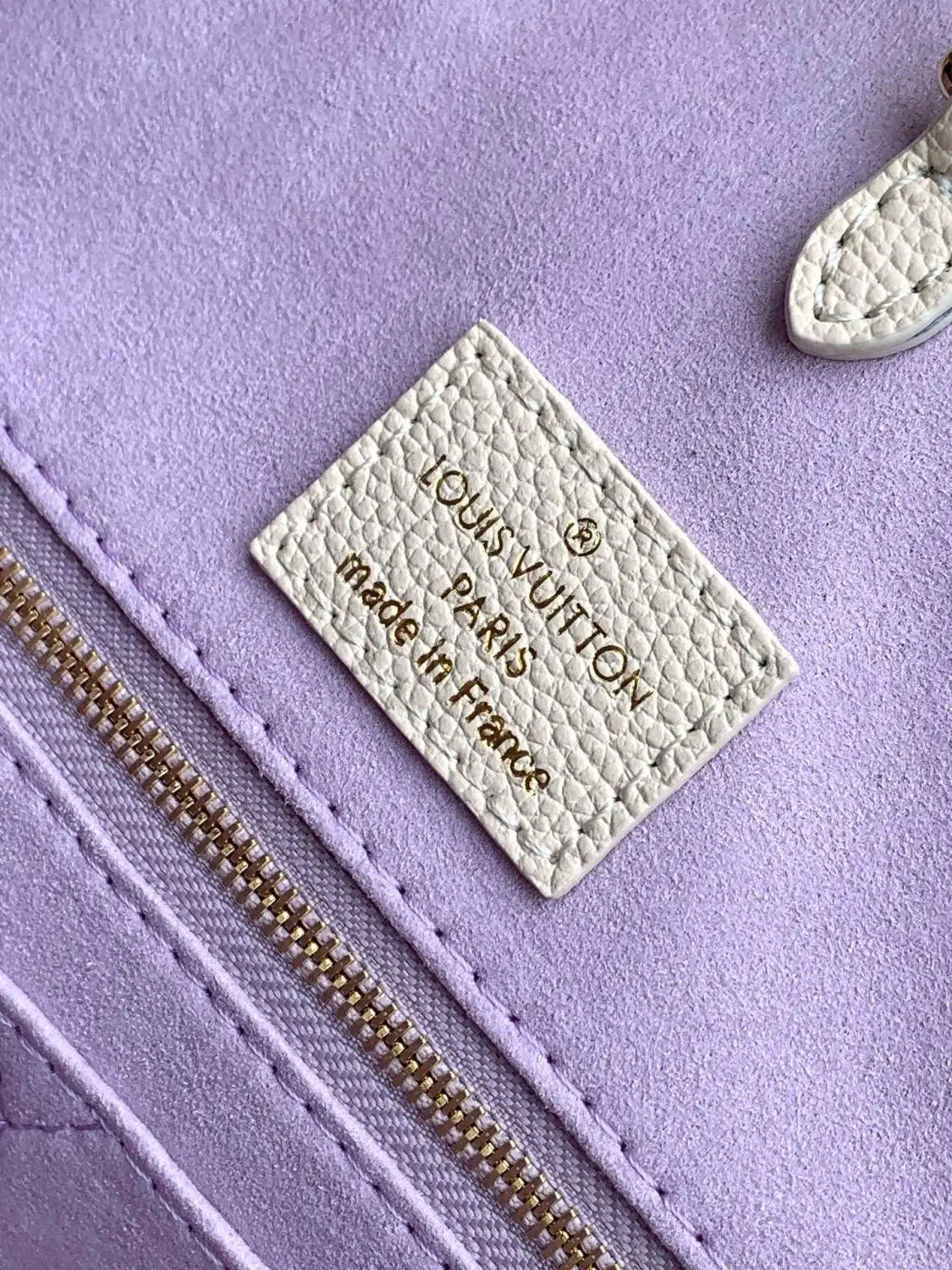 モノグラム・アンプラントレザーを使用した「OnTheGo MM」スモールトートは、落ち着いたパステルカラーが、この実用的なバッグに新鮮な印象を与えます。13インチのノートパソコンを収納できる十分な大きさで、長短2組のハンドルが付いており、手持ちと肩掛けのどちらでも持ち運べます。ハンドル取り付け部とコーナータブにあしらわれたパステルカラーが、全体の雰囲気を引き立てます。