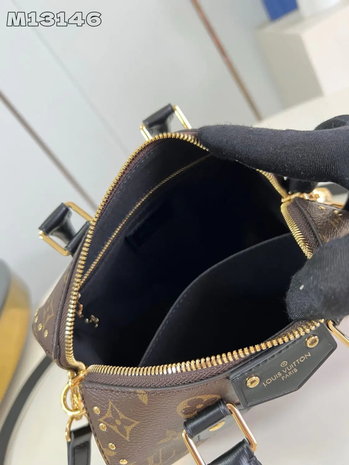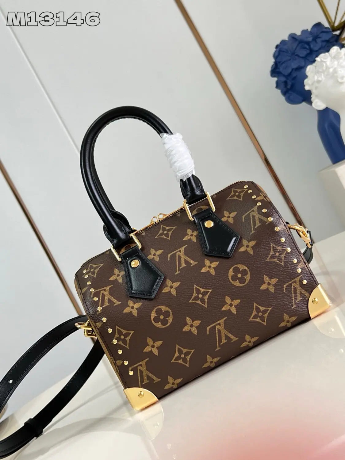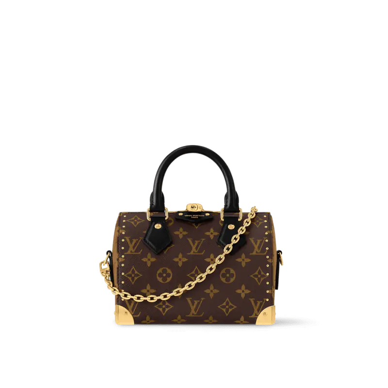 ルイ・ヴィトン 2025年クルーズ・コレクションで初登場した「スピーディ・トランク」ハンドバッグは、クラシックなデザインを大胆なコンセプトで再解釈しています。モノグラム・キャンバスにモノグラム・リバースのトリムを施し、ニコラ・ジェスキエールのシグネチャーである筆致を際立たせています。また、きらめくメタルパーツは、ブランドの長年にわたるトランク製造の伝統に敬意を表しています。ショルダーストラップとチェーンは取り外し可能で、クロスボディ、ショルダー、ハンドバッグとしてお使いいただけます。