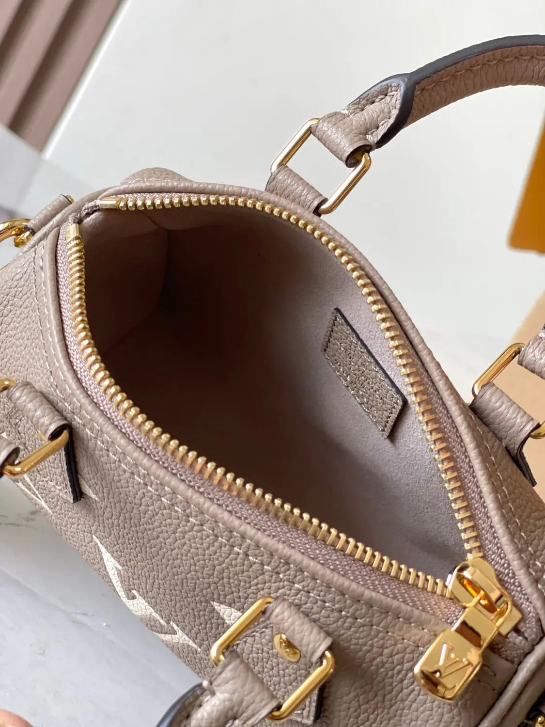 ナノ スピーディは、しなやかでグレイン加工が施されたモノグラム・アンプラント レザーを使用し、バイカラーのパレットがエンボス加工されたモノグラム・パターンを際立たせています。ルイ・ヴィトンのアイコニックなスピーディ バッグのミニチュアレプリカは、しっかりとしたジッパー開閉式で、2本のハンドルと取り外し・調節可能なショルダーストラップにより、様々な持ち方が可能です。