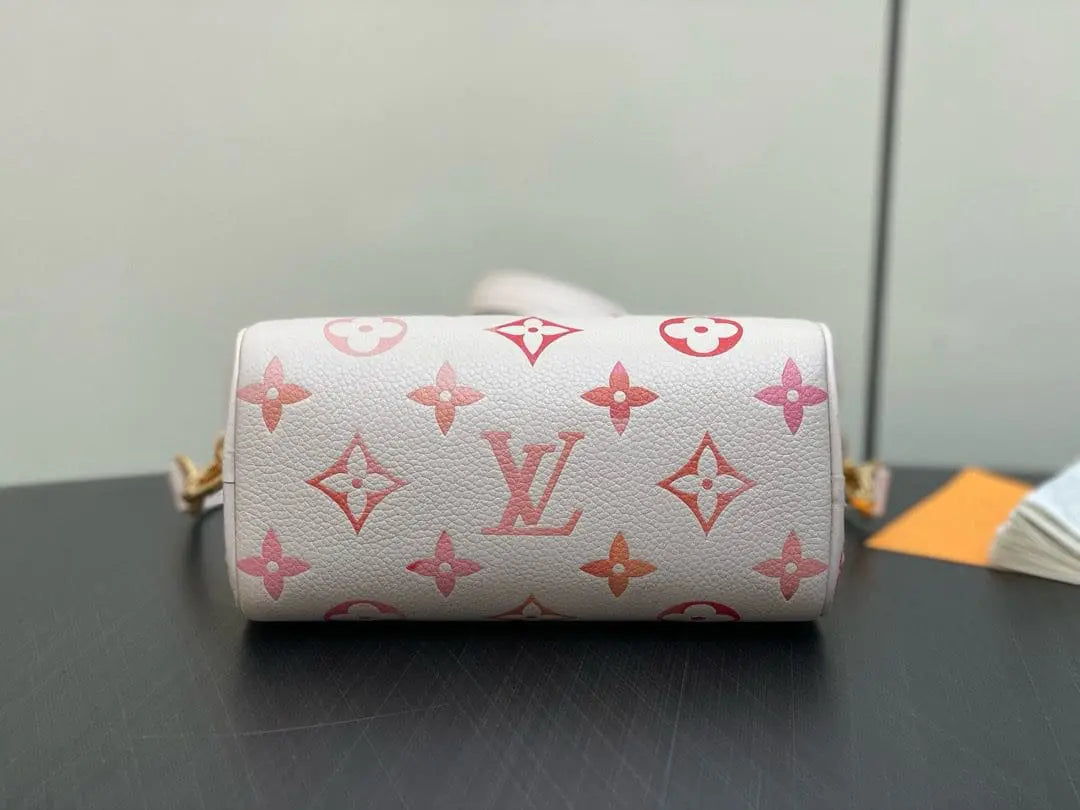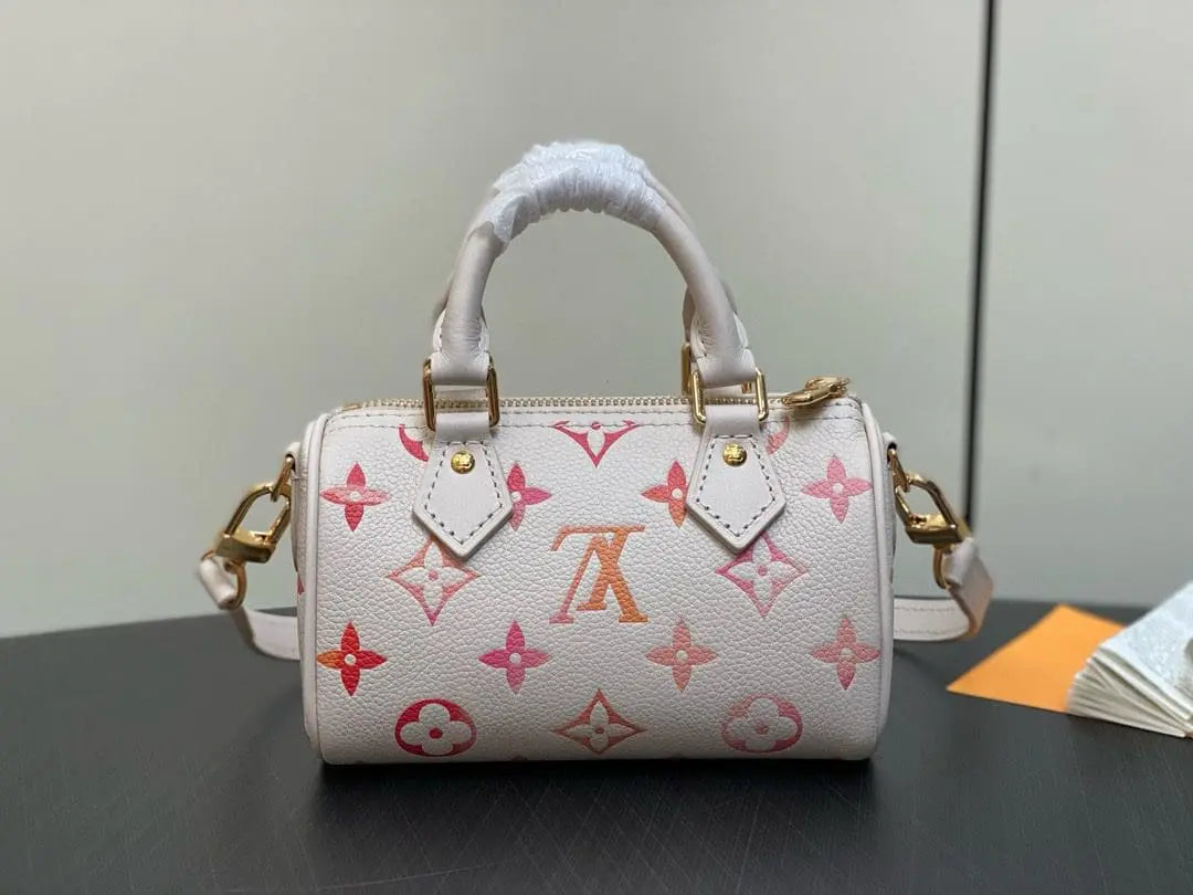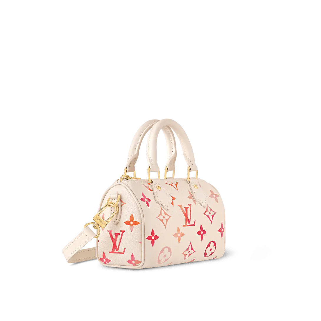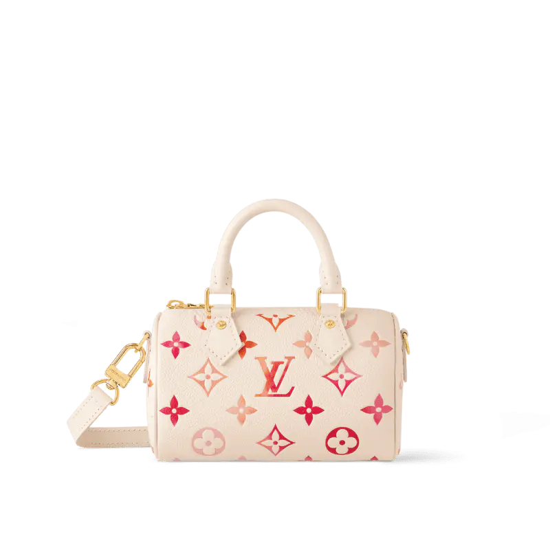 サンライズ・アクアレル・コレクションでは、モノグラム・アンプラント・レザーを使用し、ナノ・スピーディ・バッグを現代風にアレンジ。日の出の色合いをデジタルプリントすることで、水彩画のような効果を生み出しています。アイコニックなスピーディのミニレプリカは、2本のハンドルと取り外し・調節可能なショルダーストラップを備え、様々なスタイルと持ち方をお楽しみいただけます。