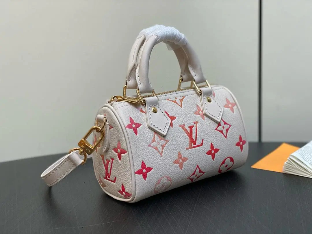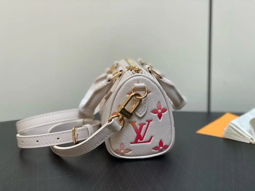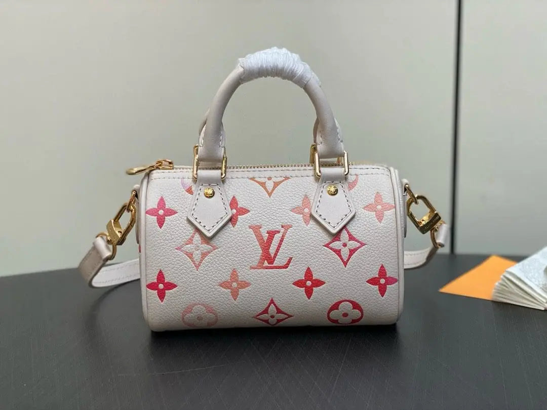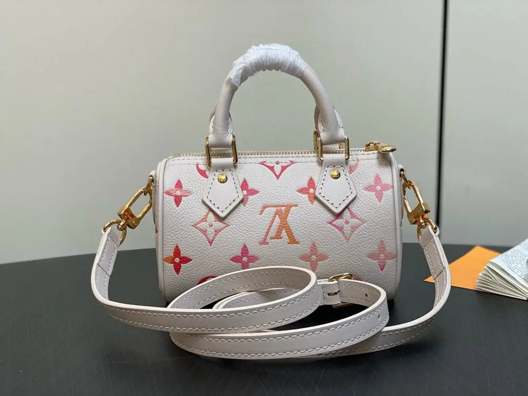 サンライズ・アクアレル・コレクションでは、モノグラム・アンプラント・レザーを使用し、ナノ・スピーディ・バッグを現代風にアレンジ。日の出の色合いをデジタルプリントすることで、水彩画のような効果を生み出しています。アイコニックなスピーディのミニレプリカは、2本のハンドルと取り外し・調節可能なショルダーストラップを備え、様々なスタイルと持ち方をお楽しみいただけます。