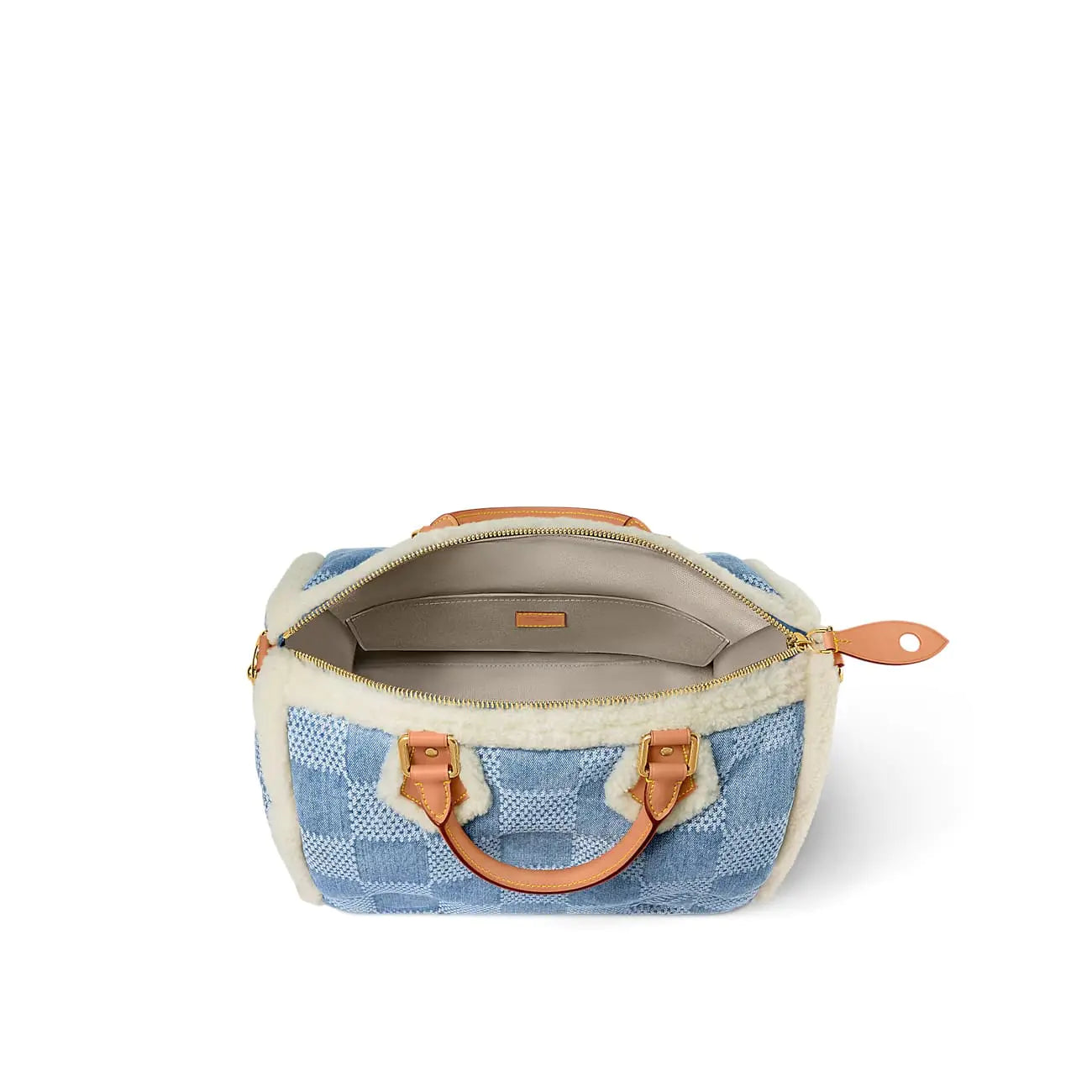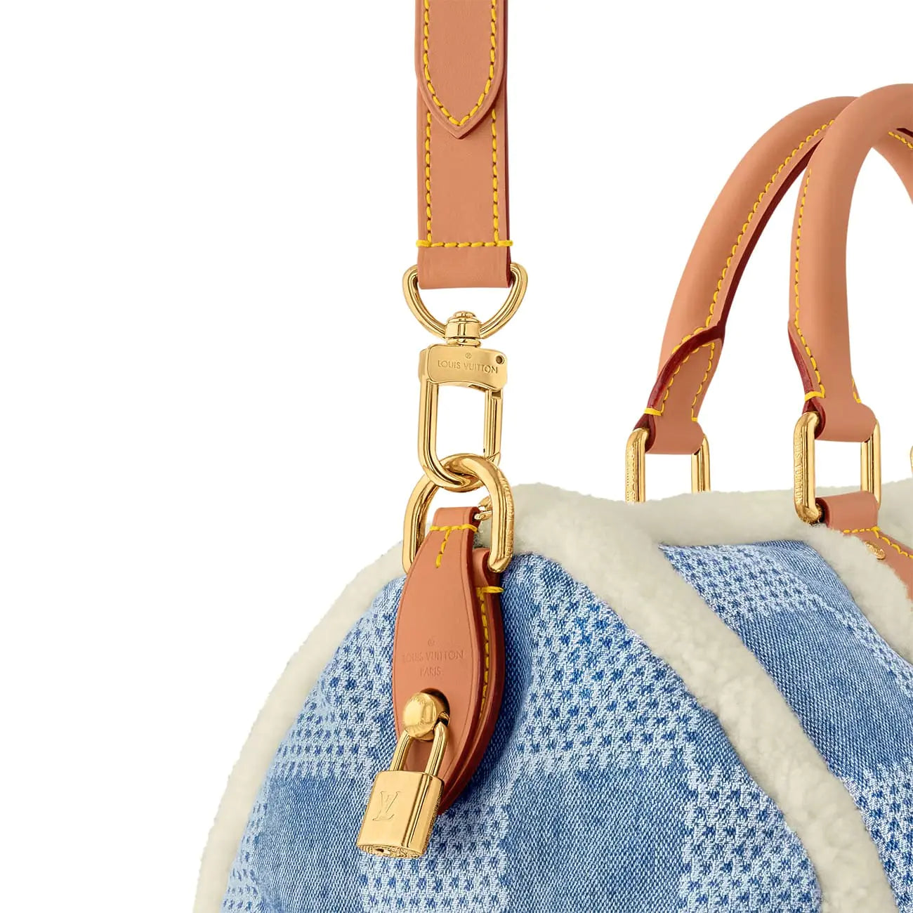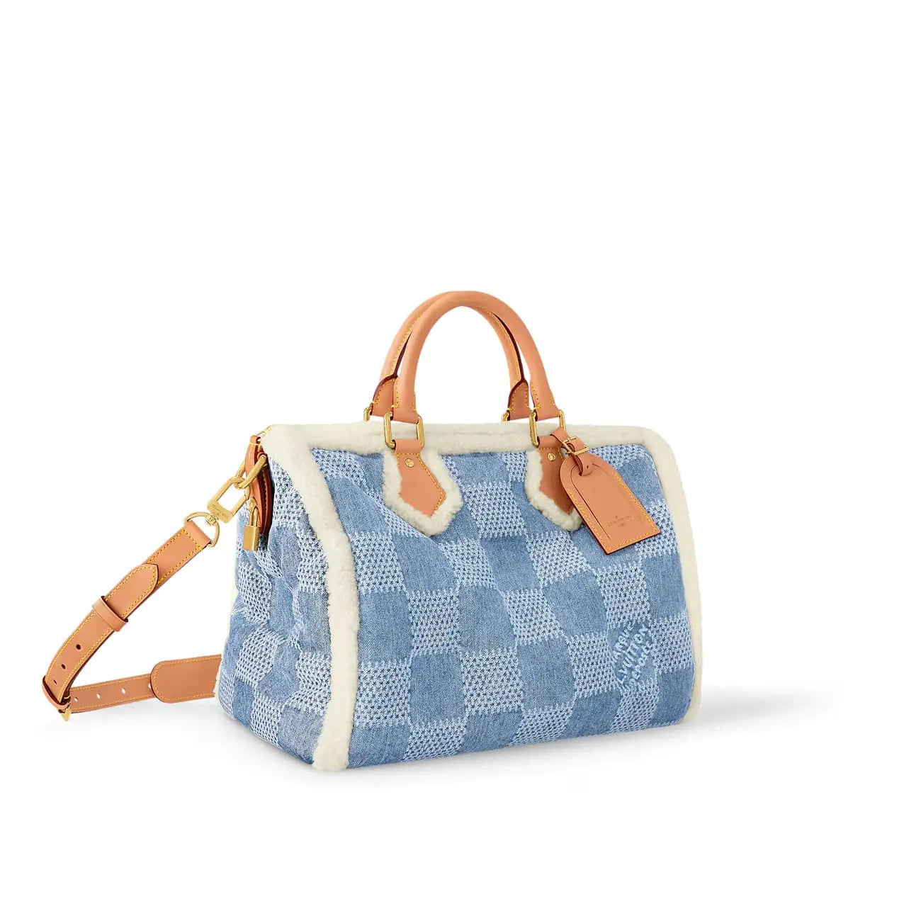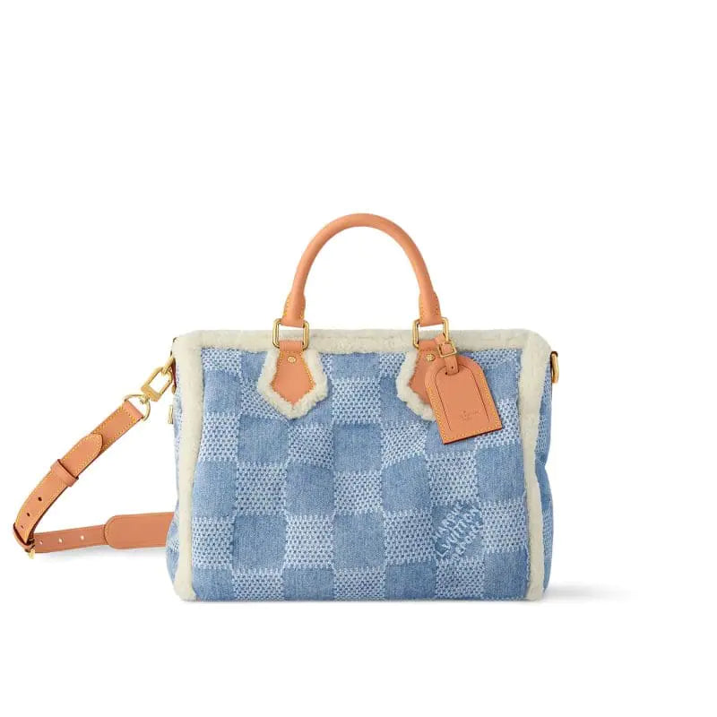 2024年スキーカプセルコレクションでは、アイコニックな「スピーディ 40 バンドリエール」が登場。ウォッシュ加工のデニムにダミエ・パターンをプリントし、快適なシアリングのトリミングを施しています。レザーのトップハンドルと、同じくレザー製の取り外し可能なショルダーストラップが、このバッグの魅力を引き立てます。スクエア型のデニムパネルにはワックスを詰め、ふっくらとした質感を演出しています。