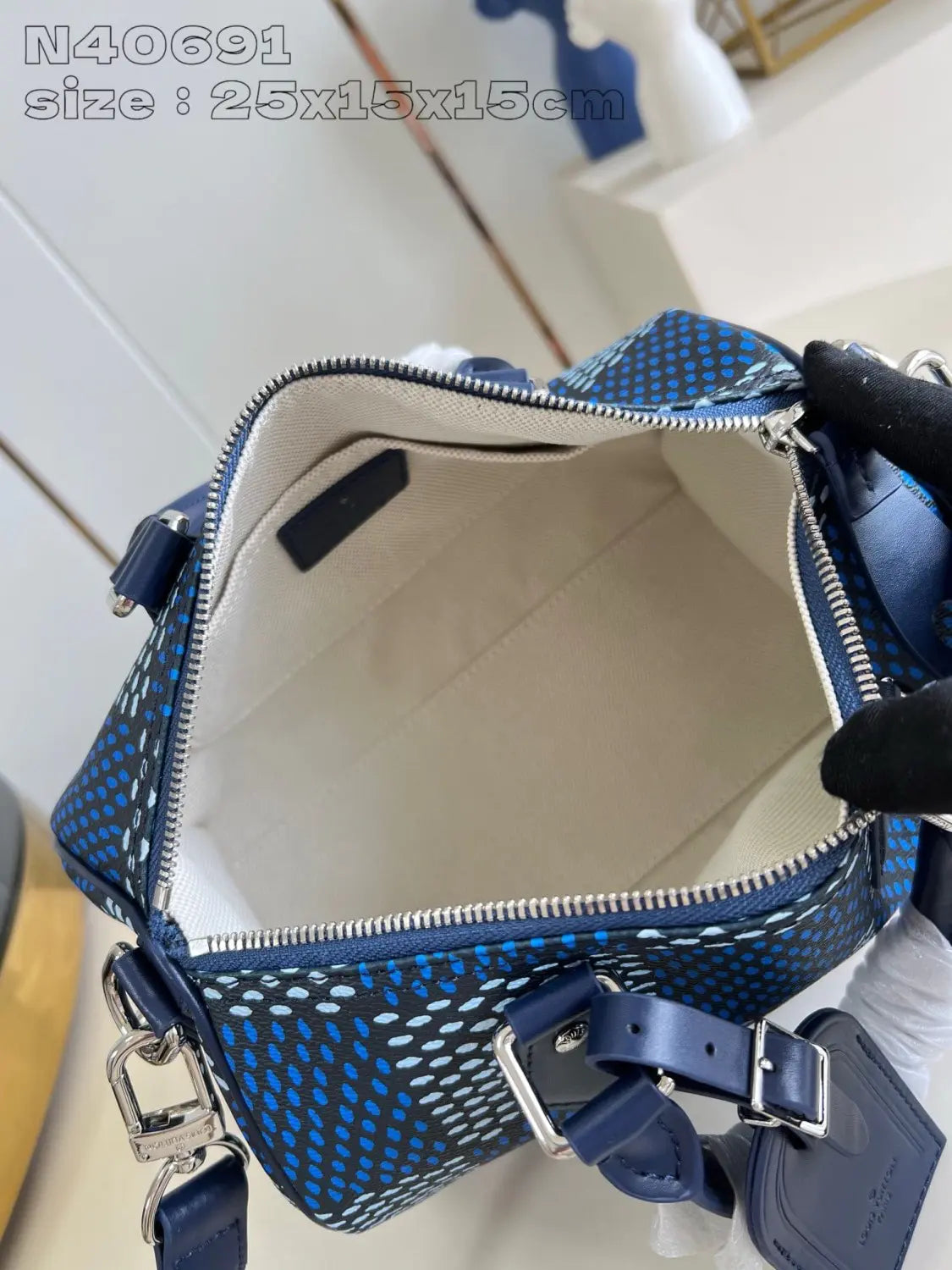 この「スピーディ 25 バンドリエール」ハンドバッグは、ファレル・ウィリアムスによる新作ダミエ・ヘリテージ・コーテッドキャンバスを使用し、レトロなチェック柄と「L.Vuitton Déposée」のロゴがあしらわれた、ブランド初期のトラベルバッグのデザインインスピレーションを受け継いでいます。トップハンドルと取り外し・調節可能なショルダーストラップが、様々な持ち方に対応します。
