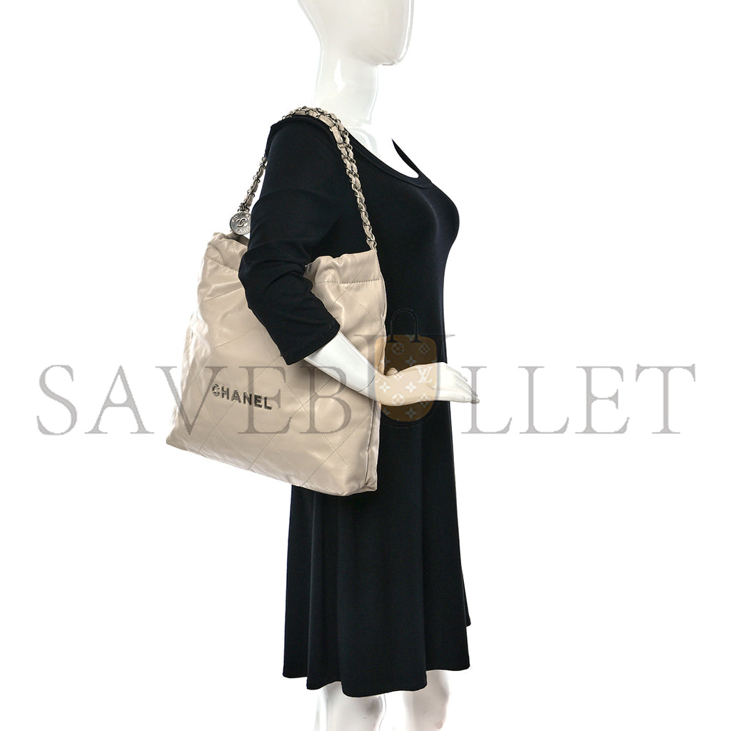 シャネル マスターミディアム 22 キルティング シャイニーカーフスキン ライトベージュ (42*39*8cm)