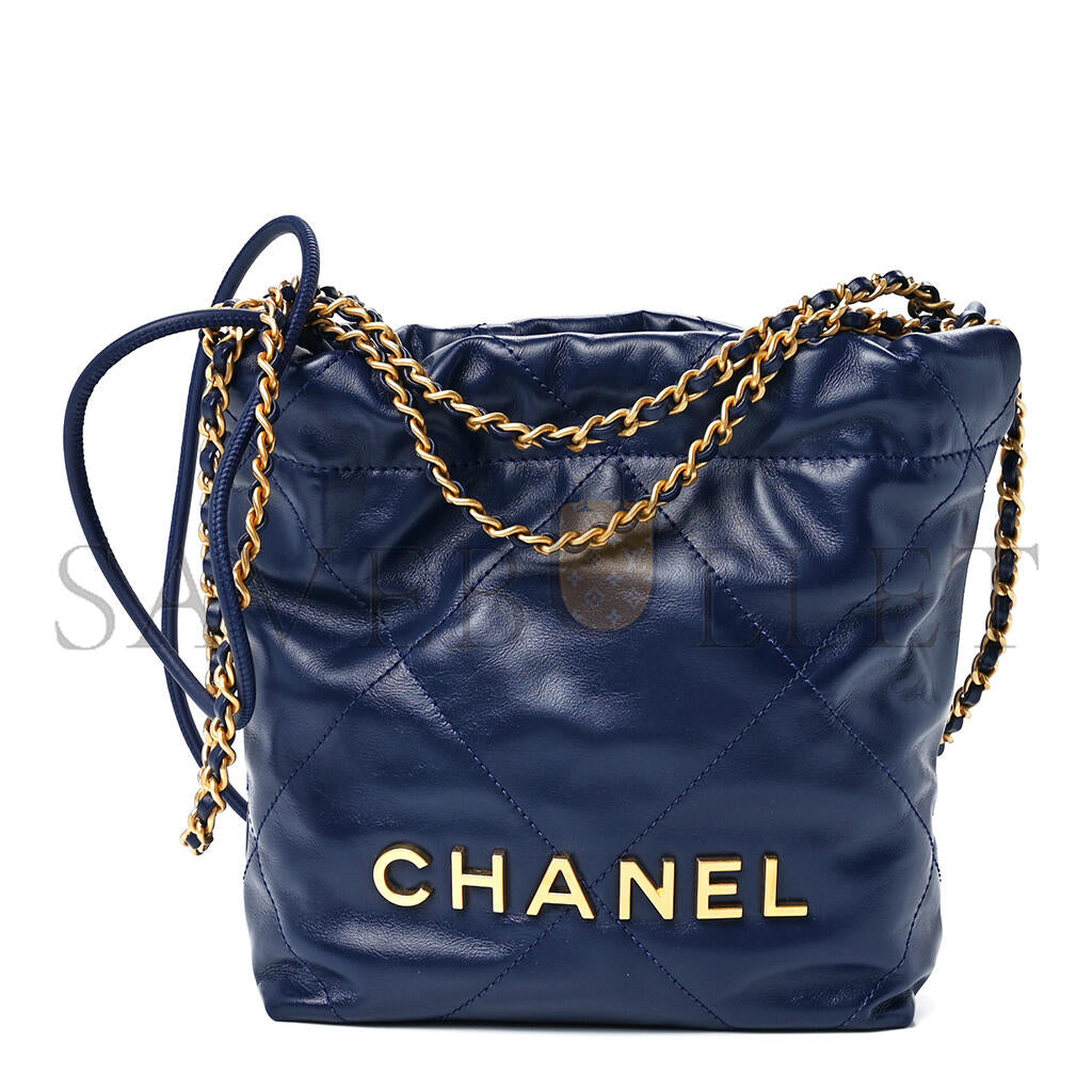 シャネル マスターシャイニーカーフスキン キルティング ミニ シャネル 22 ネイビーブルー (20*19*6cm)