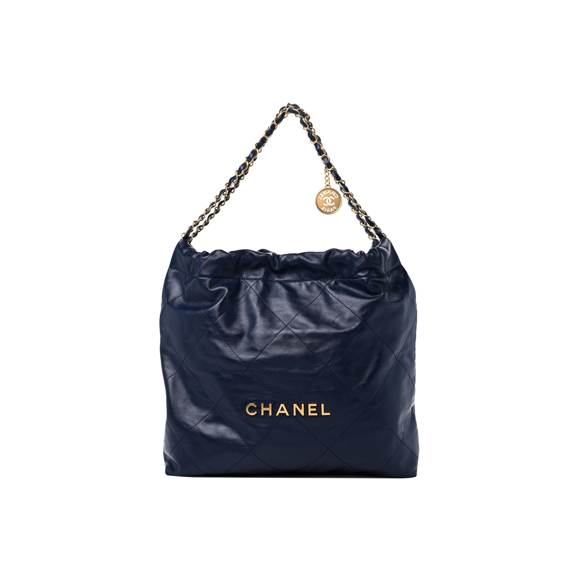 シャネル マスターシャイニーカーフスキン キルティング シャネル 22 ネイビーブルー (42*39*8cm)