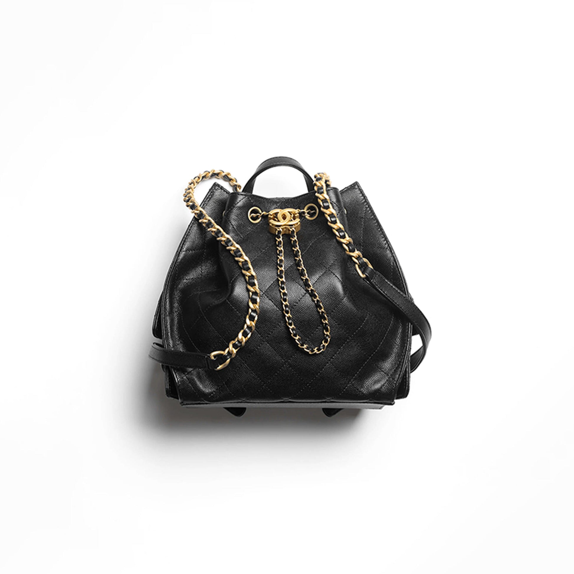 シャネル 25 ミディアム バックパック グレインカーフスキン & ゴールドトーンメタル ブラック AS5600 (23*23*14cm)