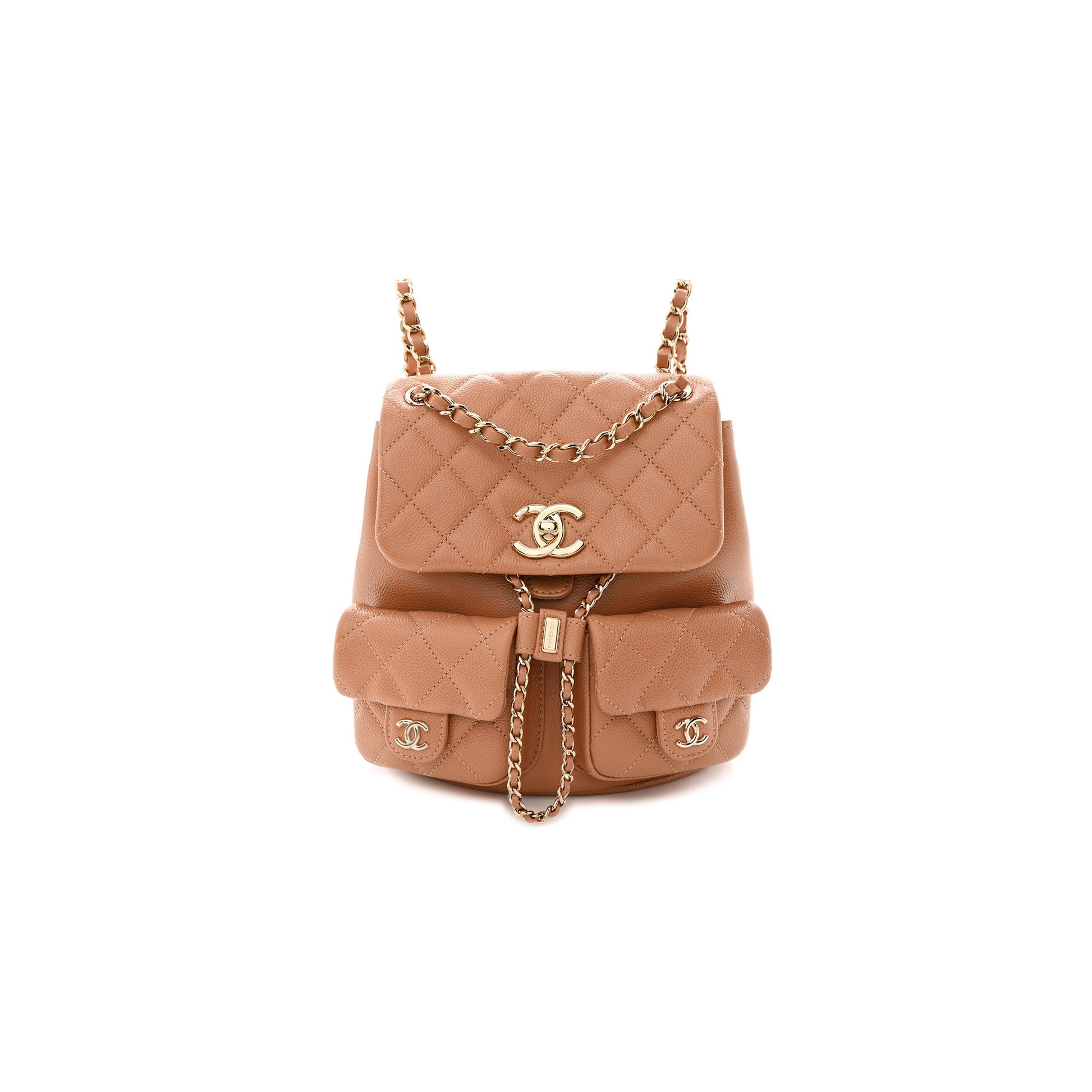 シャネル マスターシャイニーキャビア キルティング ドゥマポケット ドローストリング バックパック ダークベージュ (20.5×20×11.5cm)